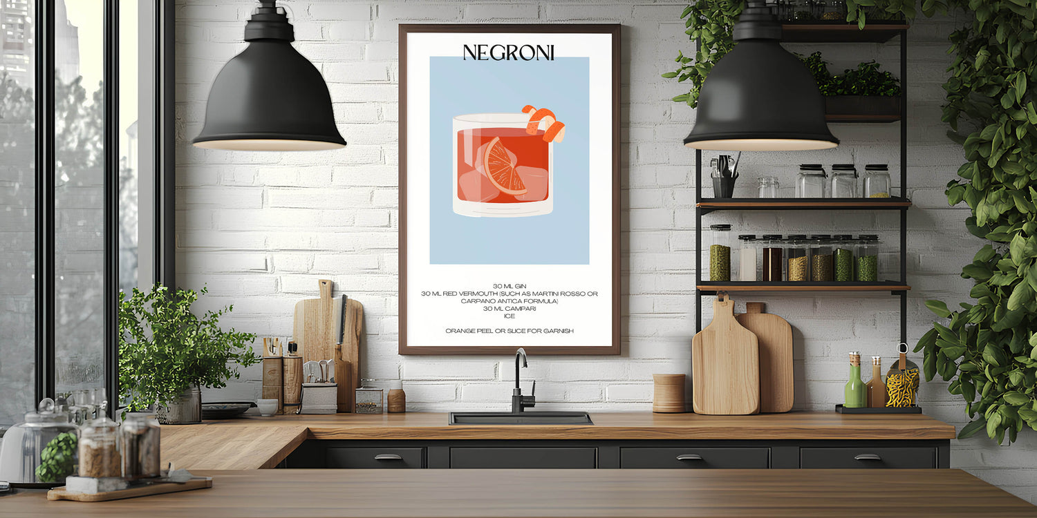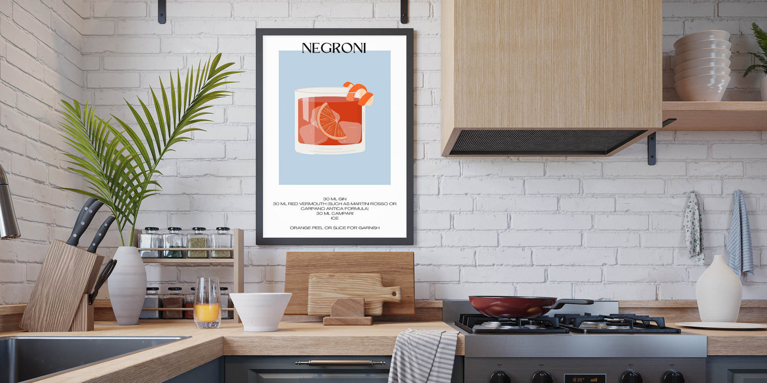 Negroni Cocktail Print - Bar Wall Art for Kitchen & Home Bar