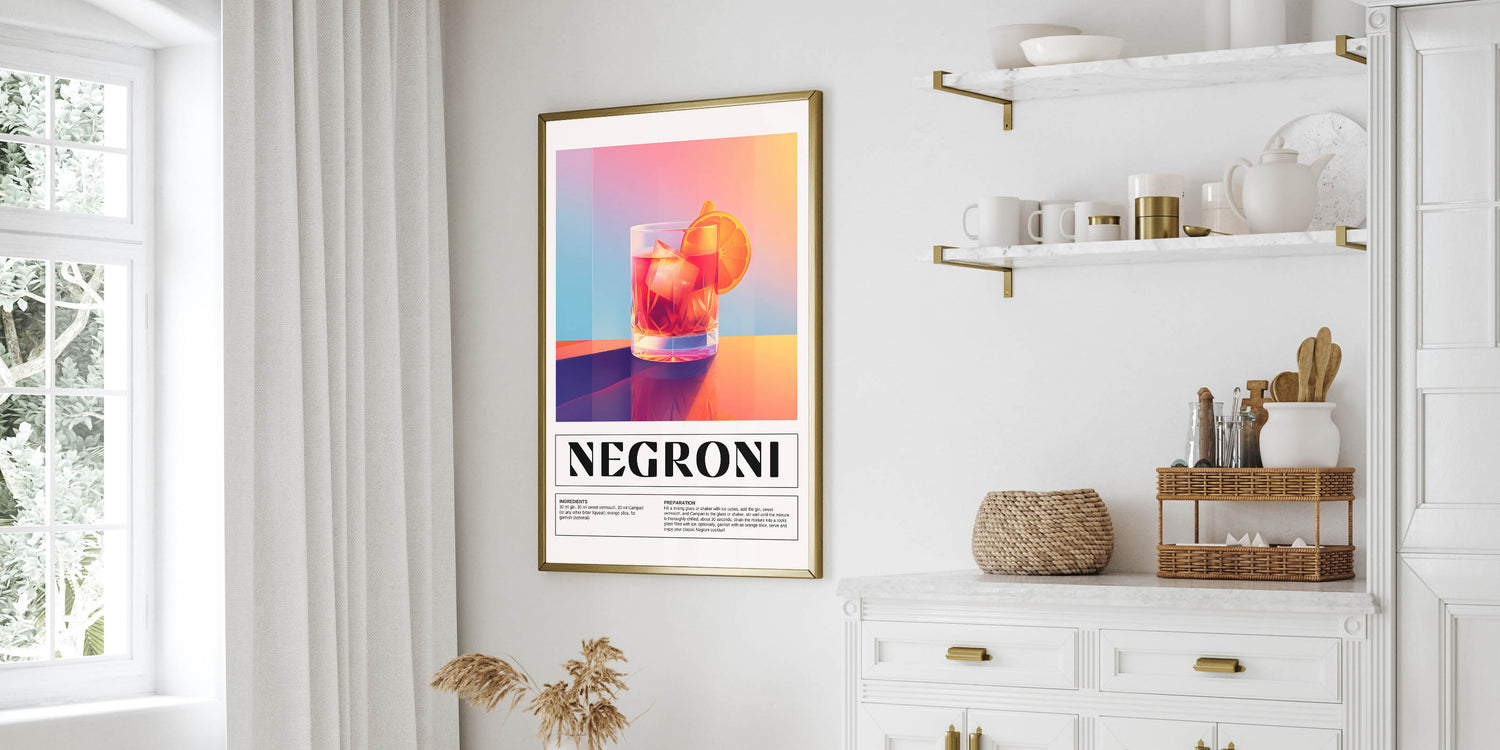 Perfect for adding a splash of color to your kitchen, bar, or lounge, this beverage wall art creates a bold and sophisticated atmosphere. Let your love for craft cocktails shine with this Negroni art print.