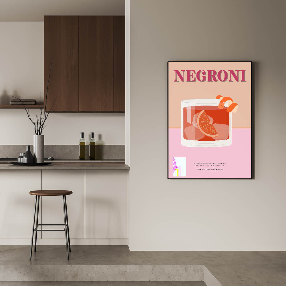 - Drink-Themed Art Prints: A beautifully designed cocktail art print that celebrates the timeless elegance of the Negroni.