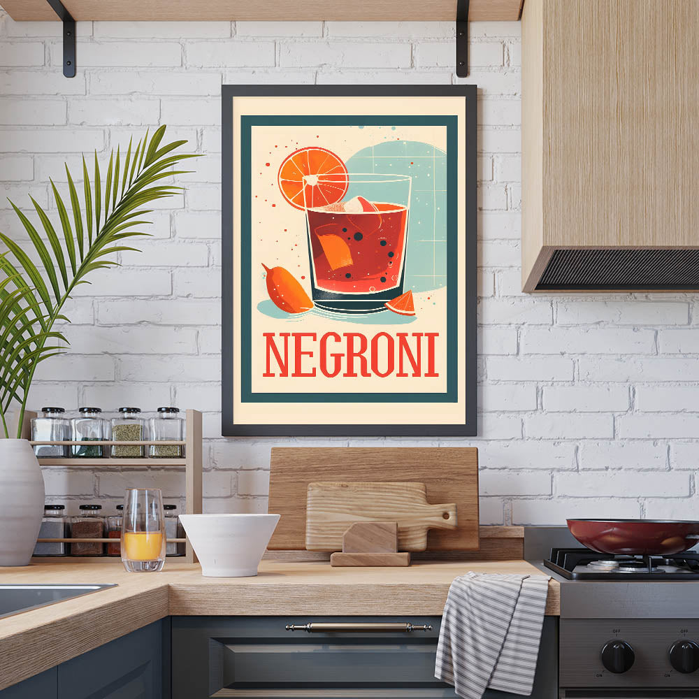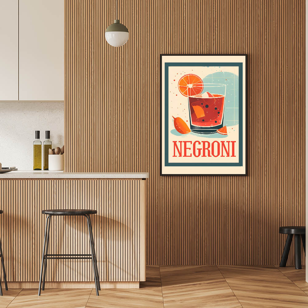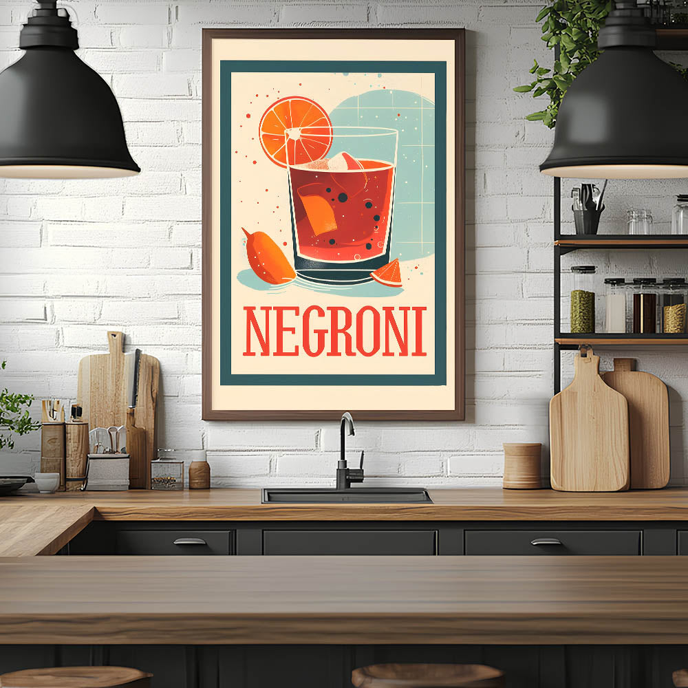 Celebrate the timeless charm of a classic cocktail with this cocktail wall art featuring a bold Negroni drink illustration. The retro-inspired design, rich red-orange hues, and vintage typography make this beverage wall art a standout piece for bar decor, kitchens, and cocktail lounges. Whether you’re a Negroni lover or a fan of artistic drink prints, this artwork adds a sophisticated and stylish touch to any space.