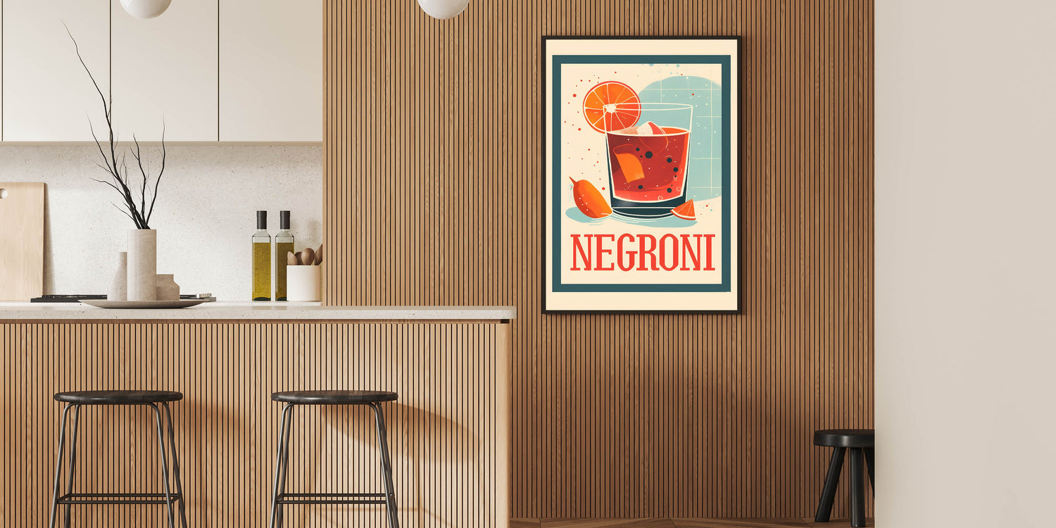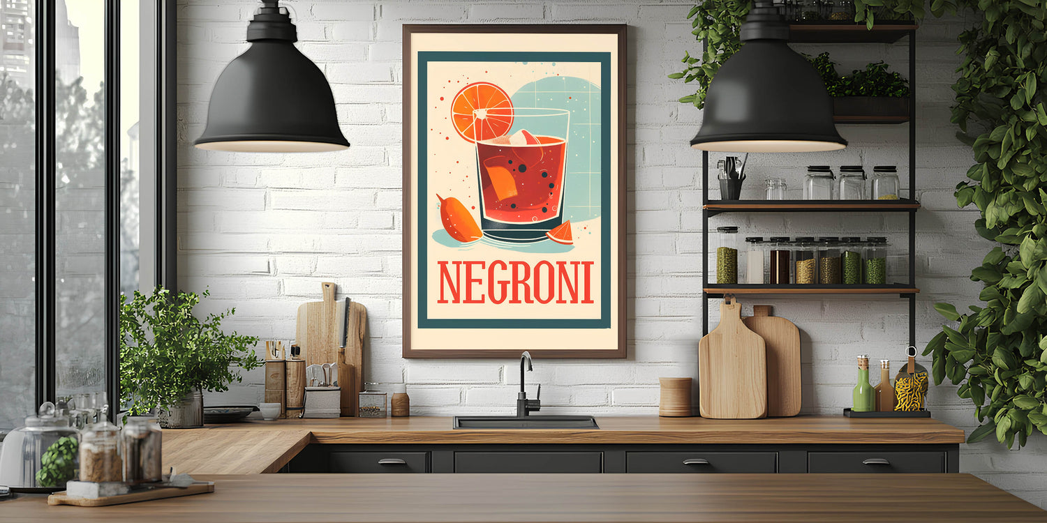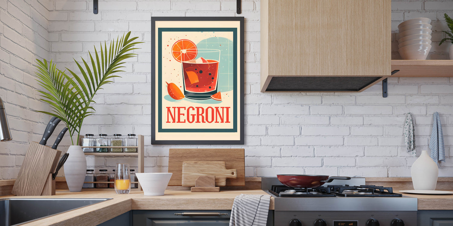 Celebrate the timeless charm of a classic cocktail with this cocktail wall art featuring a bold Negroni drink illustration. The retro-inspired design, rich red-orange hues, and vintage typography make this beverage wall art a standout piece for bar decor, kitchens, and cocktail lounges. Whether you’re a Negroni lover or a fan of artistic drink prints, this artwork adds a sophisticated and stylish touch to any space.