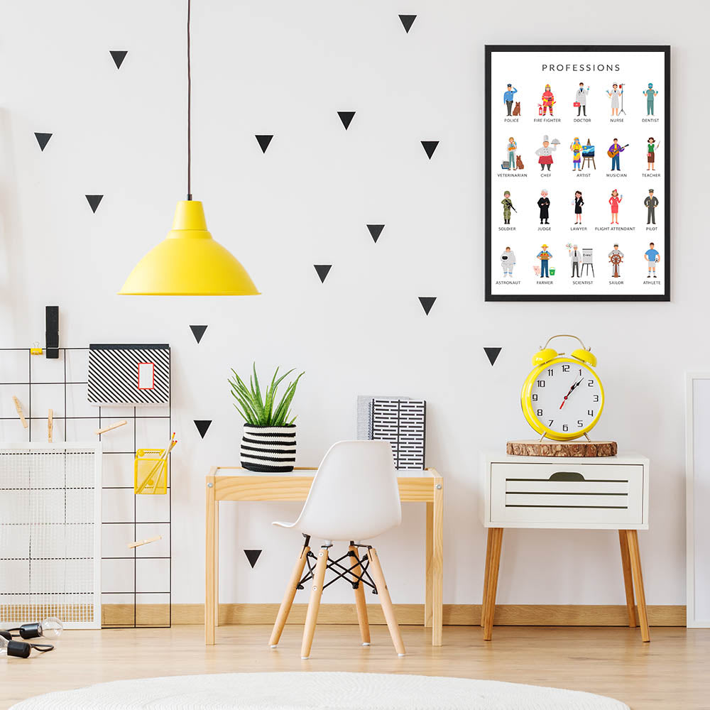 Introduce children to different career paths with this Professions Educational Wall Art. Featuring colorful and engaging illustrations of doctors, firefighters, teachers, scientists, musicians, astronauts, and more, this children’s learning art print makes it easy for kids to recognize and understand various professions. Perfect for kids' rooms, classrooms, and play areas, this educational canvas print helps children explore potential career aspirations.