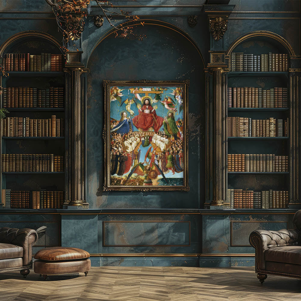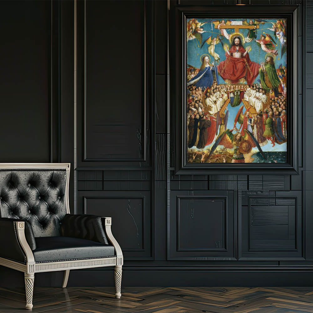 - Intricate Details: High-definition prints showcase van Eyck’s meticulous brushwork and vivid contrasts of light and shadow.