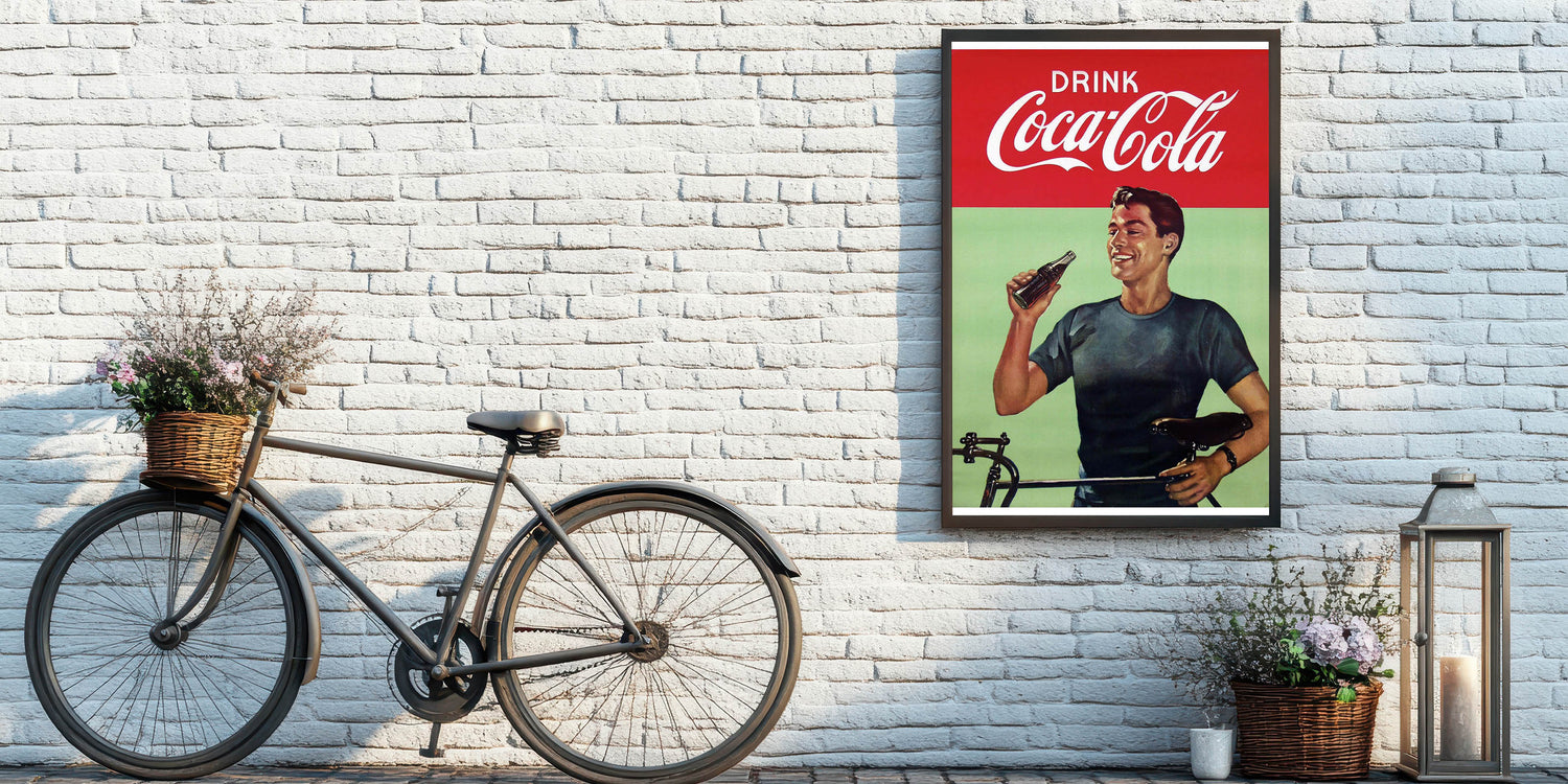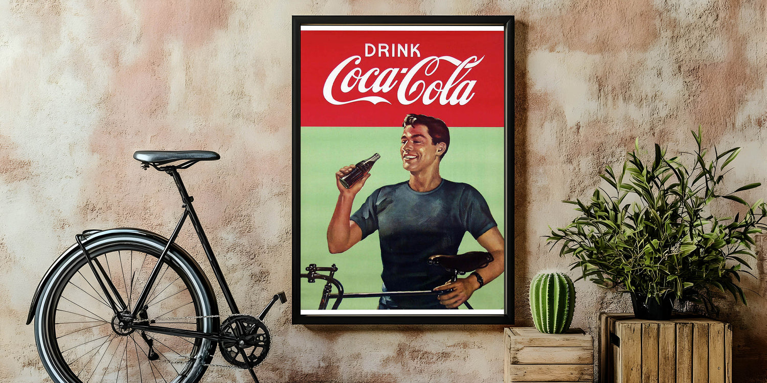 Transform your walls with this timeless Retro art print, celebrating the classic Coca-Cola spirit. Its bright hues and nostalgic design bring a lively and authentic vibe to any room. Order now to elevate your decor with a touch of vintage flair!