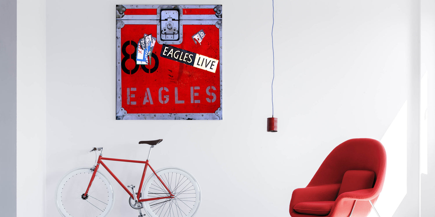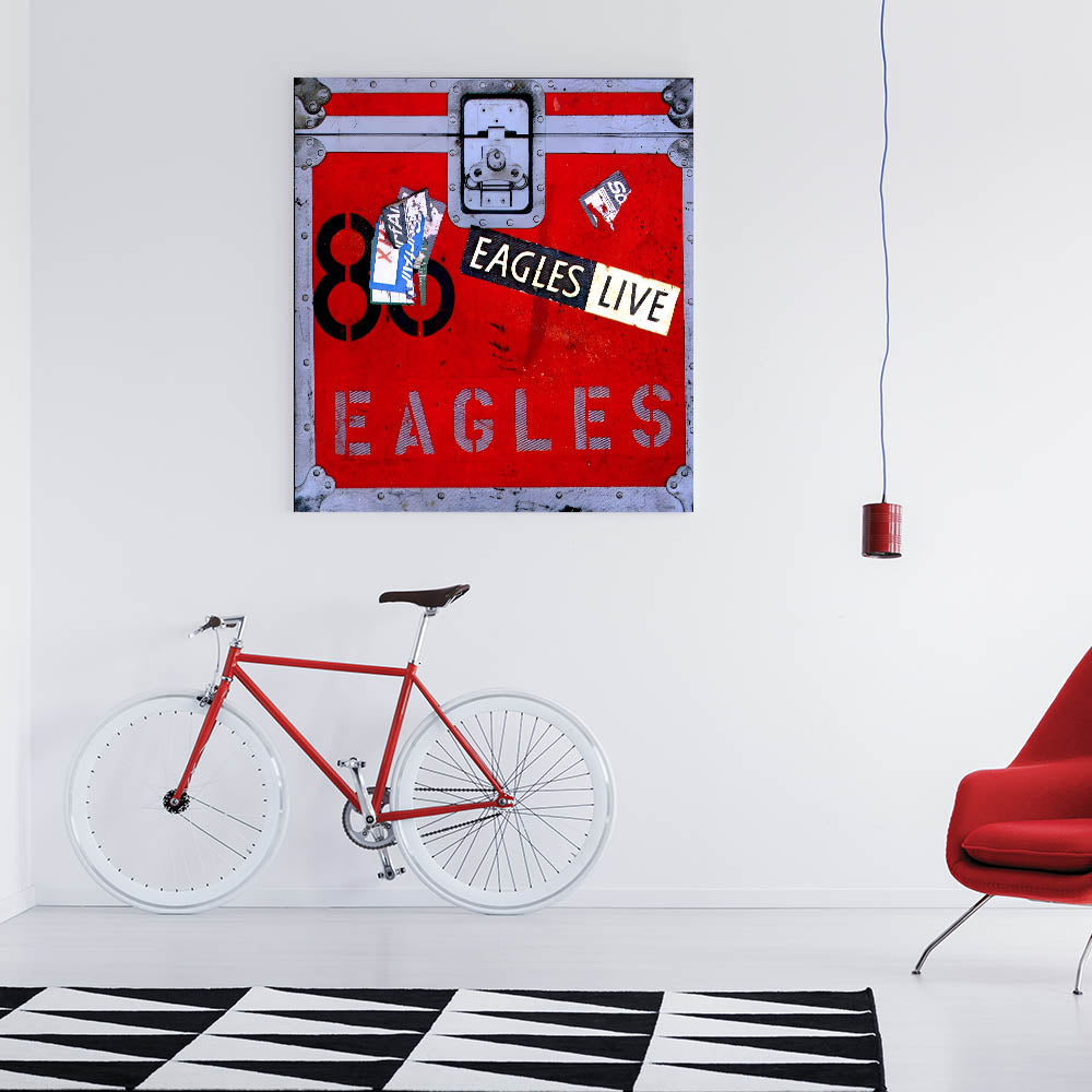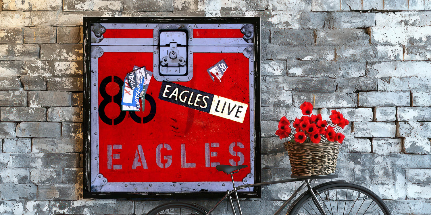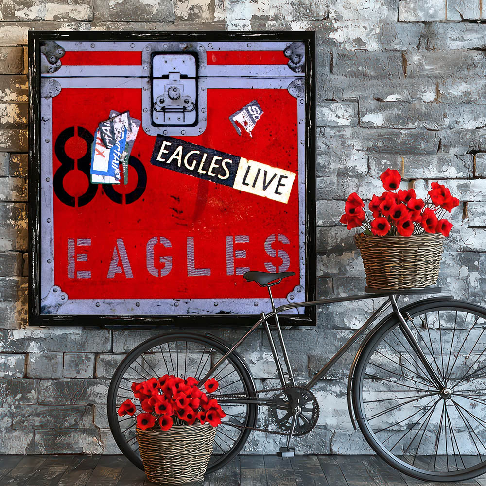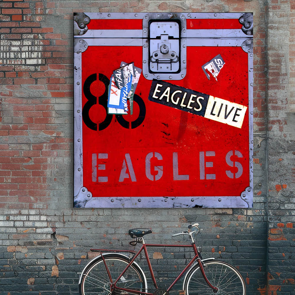 Bring the energy of live rock performances to your space with this Retro Wall Art featuring the Eagles' iconic Live album cover. Designed for fans of vintage decor and nostalgic art prints, this piece captures the essence of classic retro style with its bold red tones and rugged, tour-case design.