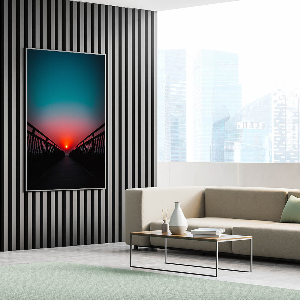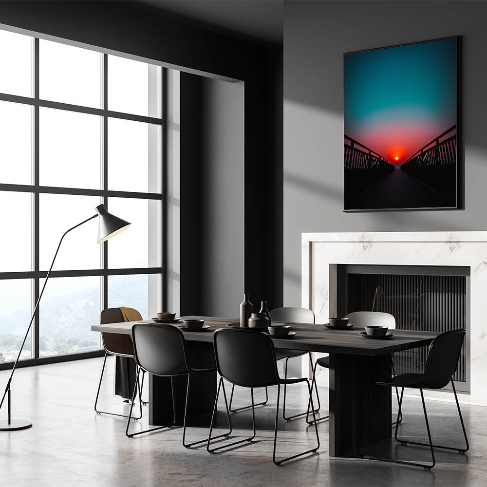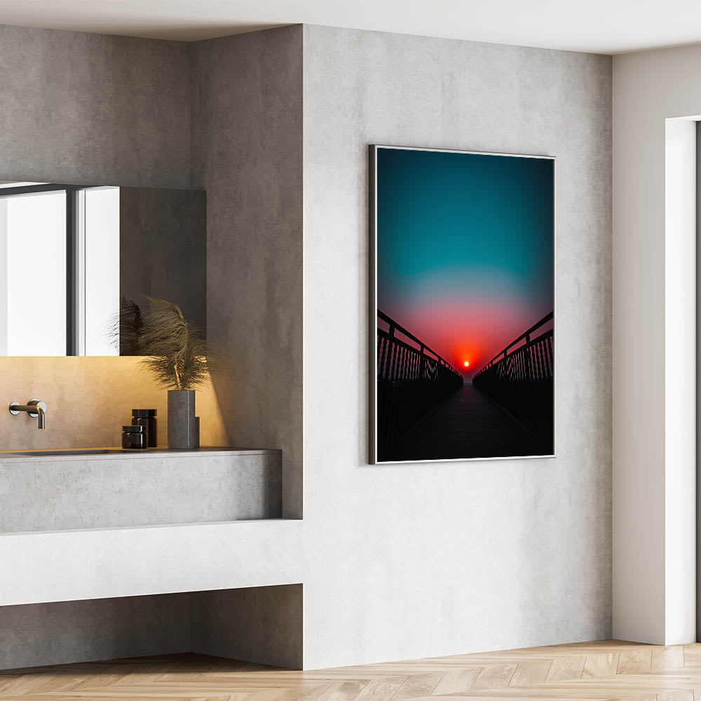 Whether you're a fan of modern bridge wall decor or searching for unique bridge art prints to elevate your space, this artwork offers the perfect combination of beauty and sophistication. Pair it with contemporary or minimalist decor for a cohesive look. Transform your interiors with this breathtaking sunset bridge artwork today!