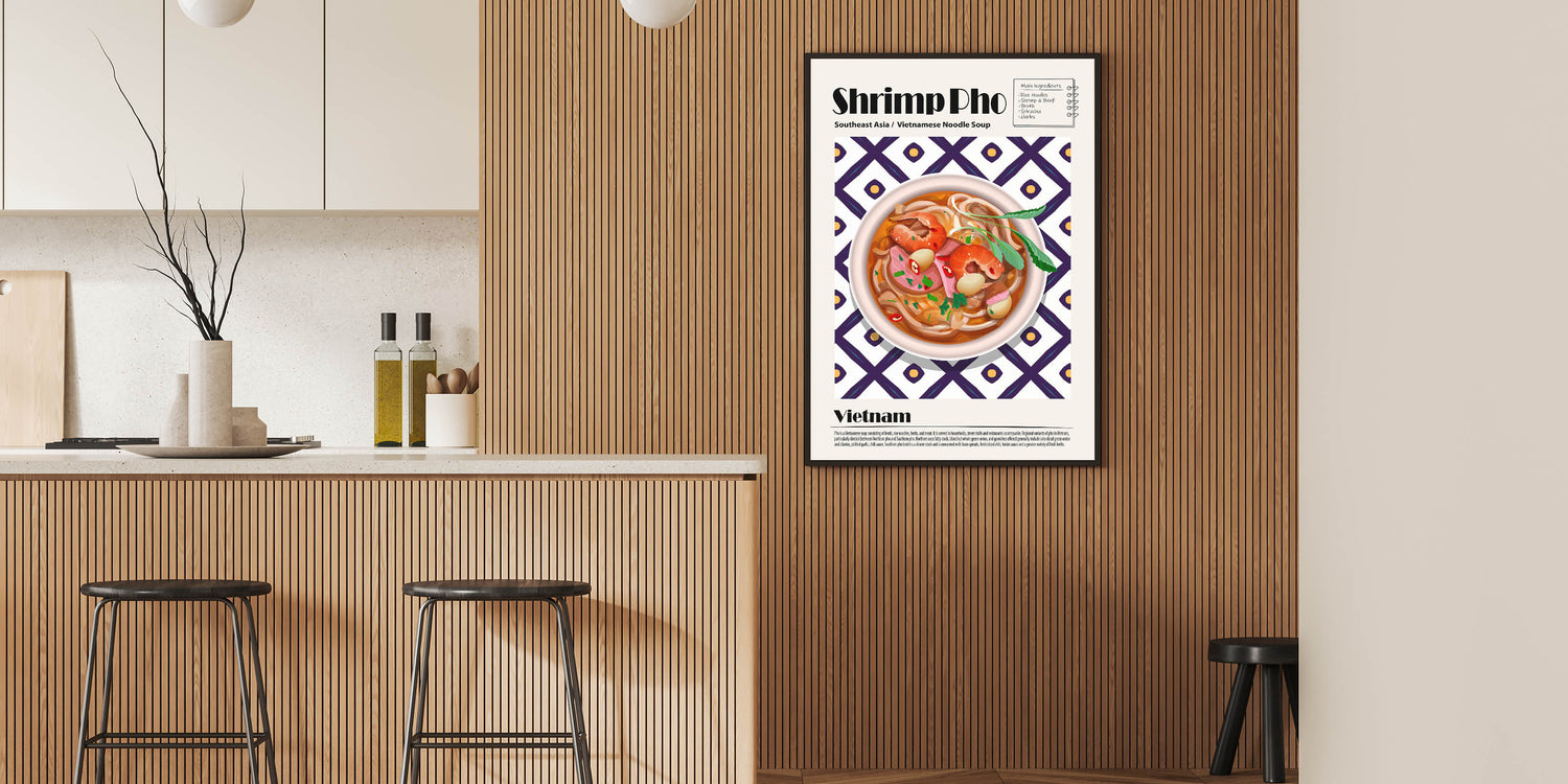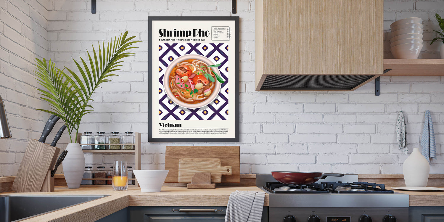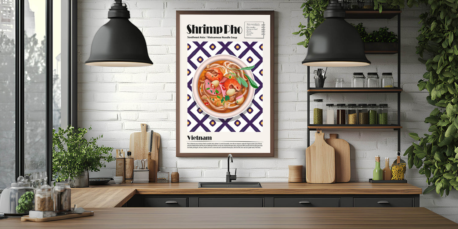 Shrimp Pho Dishes Wall Art - Vietnamese Kitchen & Dining Decor