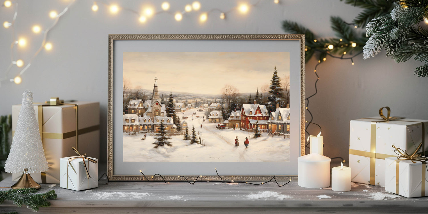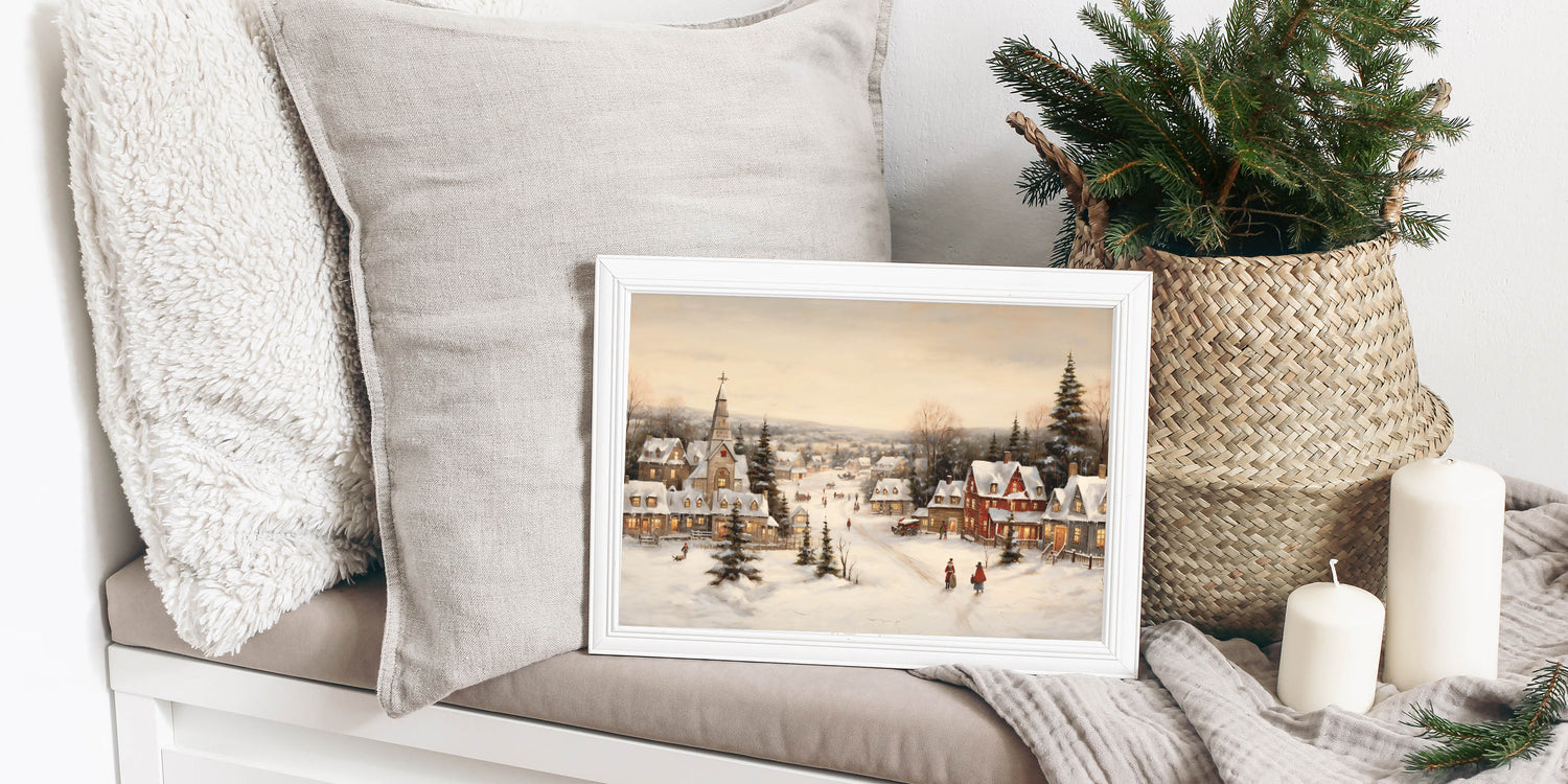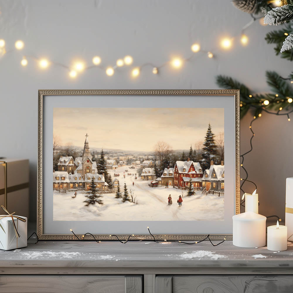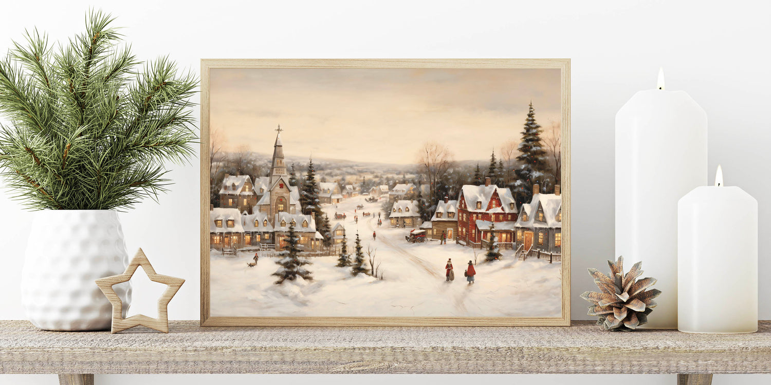 Snowy Christmas Village – Nostalgic Christmas Art Prints