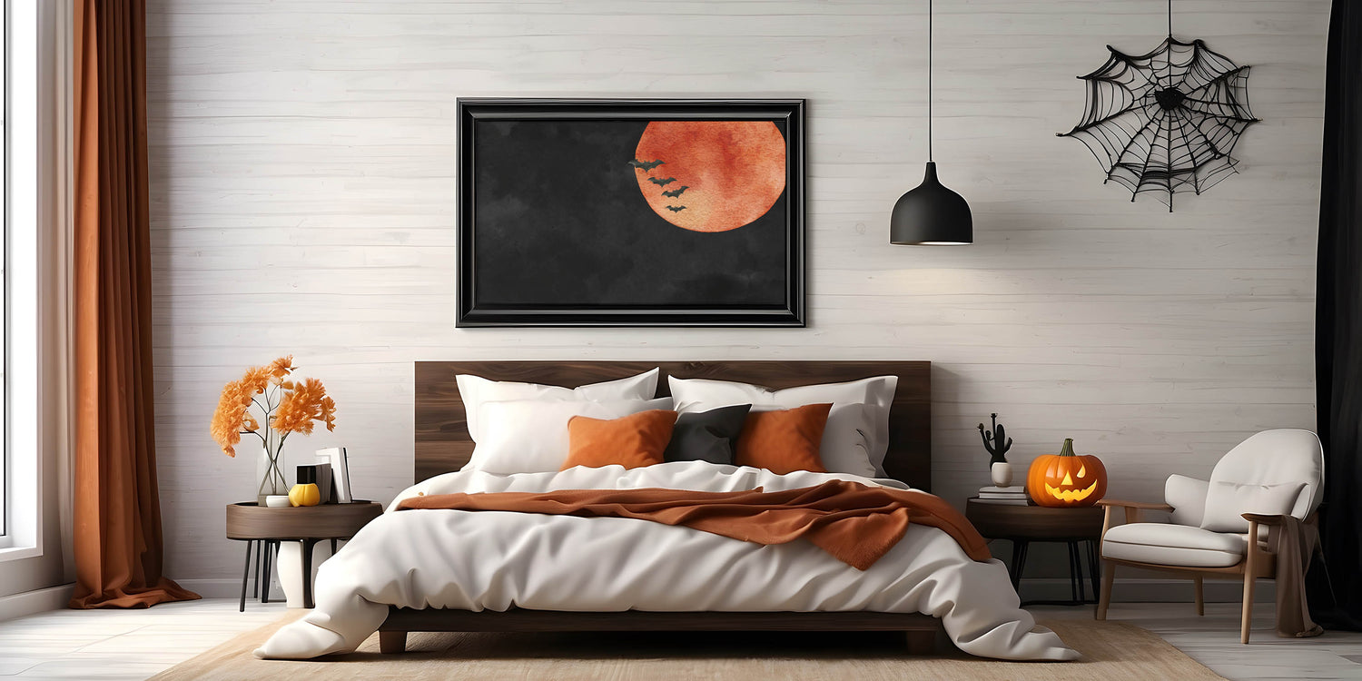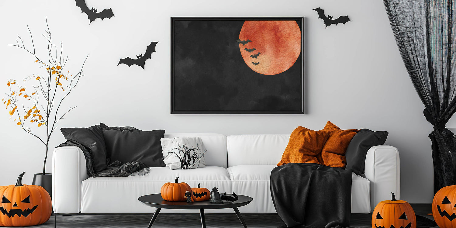 - A sophisticated yet eerie Halloween art print for living rooms, bedrooms, and hallways