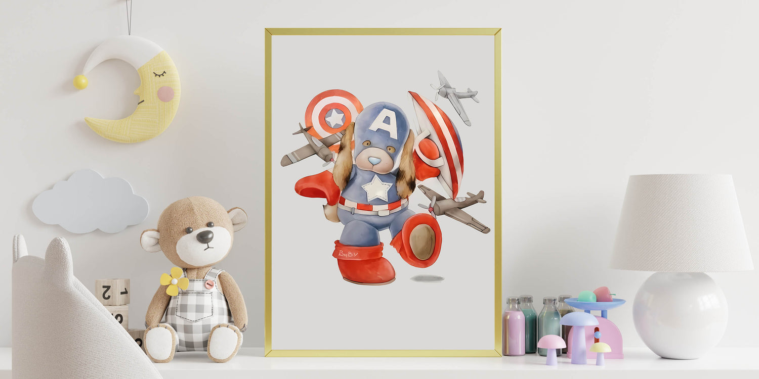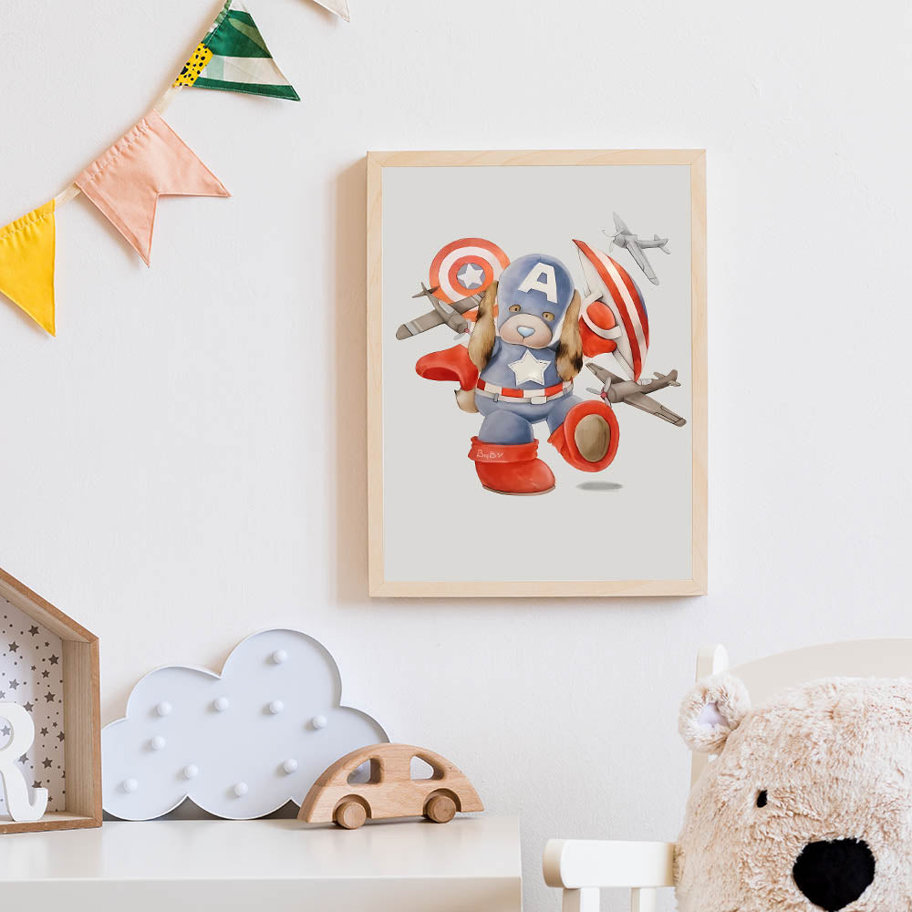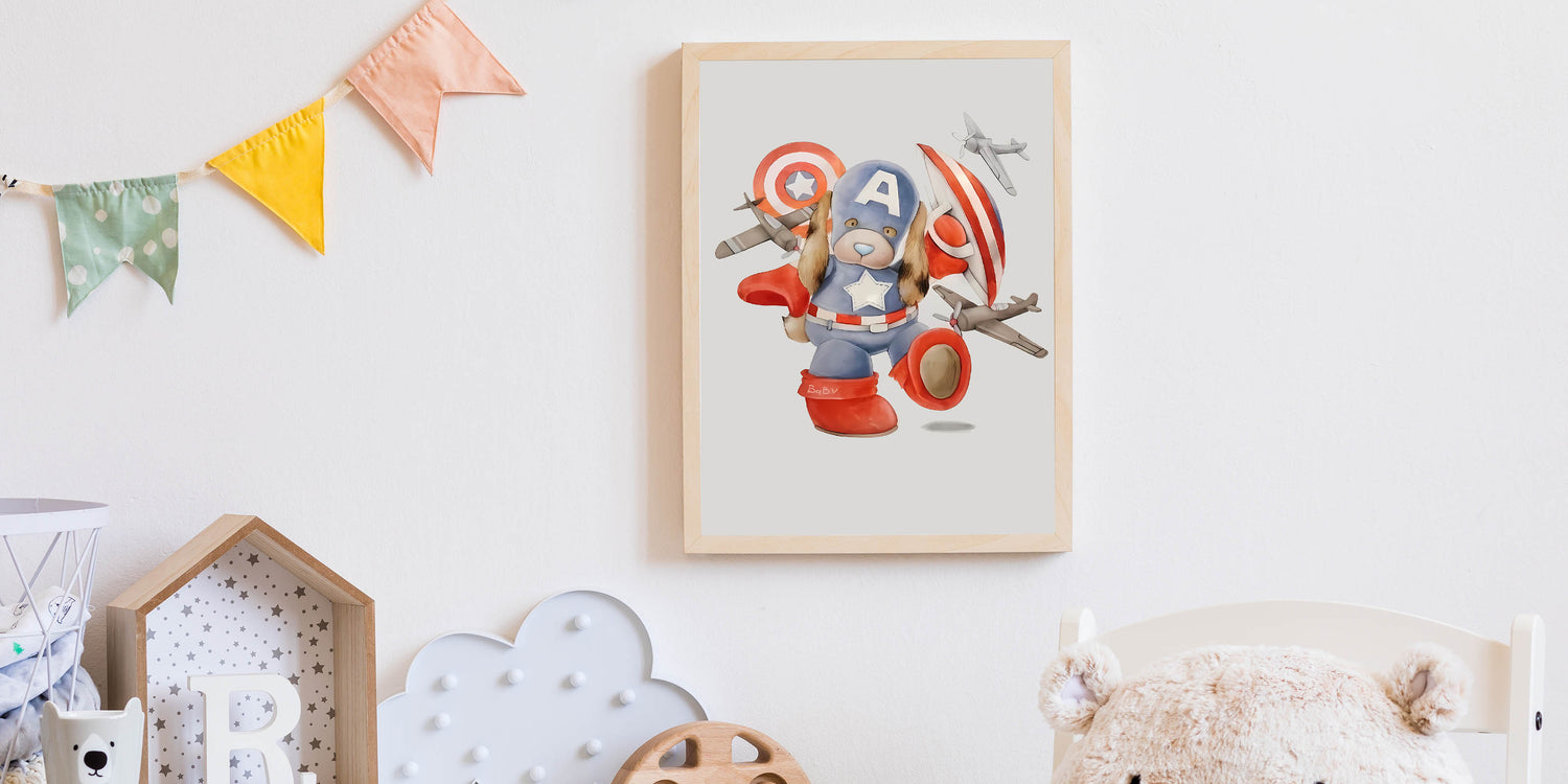 This nursery wall art is ideal for boys bedroom art, playrooms, or superhero-themed spaces. Whether your child dreams of saving the world or simply loves dogs, this print will ignite their imagination and bring a bold, action-packed vibe to their walls.
