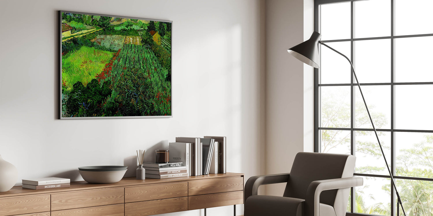 Bring the timeless charm of the countryside into your home with "Field with Poppies" by Vincent van Gogh. This masterpiece adds warmth and depth to any decor, offering a vibrant yet calming presence. Add this iconic piece to your wall art collection today.