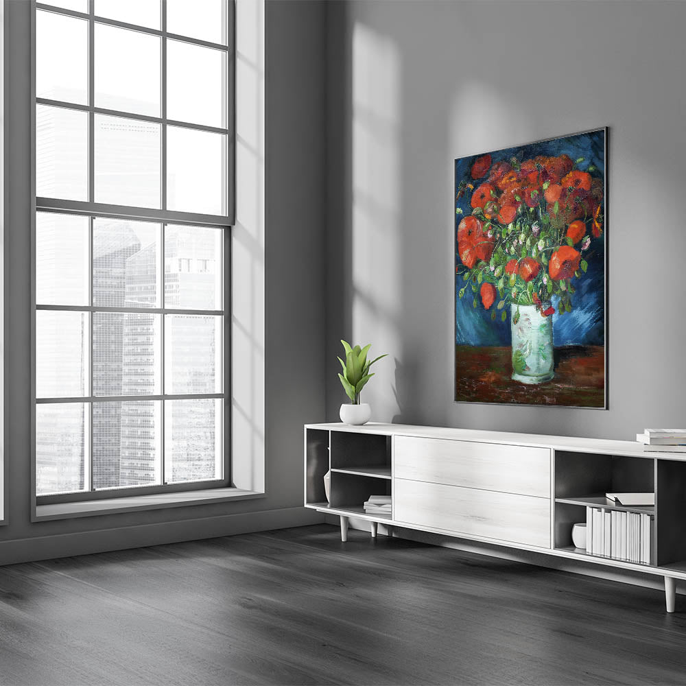 Celebrate Van Gogh’s iconic artistry and the timeless appeal of Impressionist still-lifes with this stunning piece. Whether displayed in a living room, kitchen, or office, Vase with Poppies is sure to add warmth and sophistication to your decor.