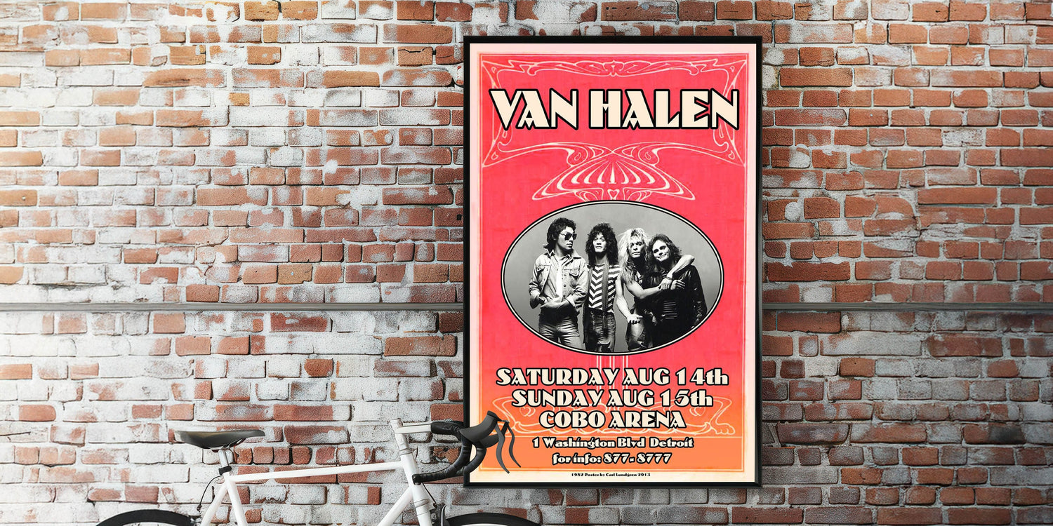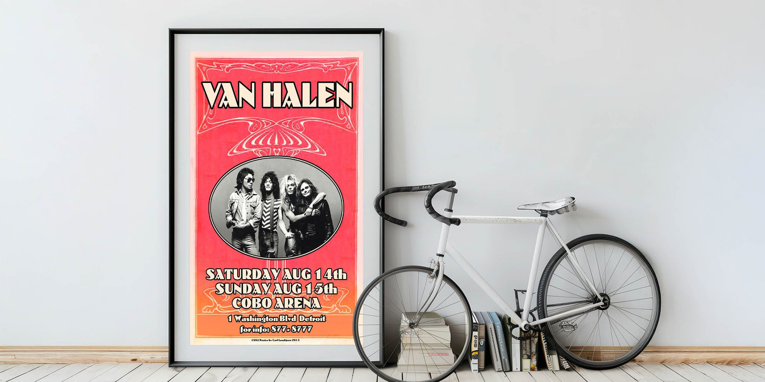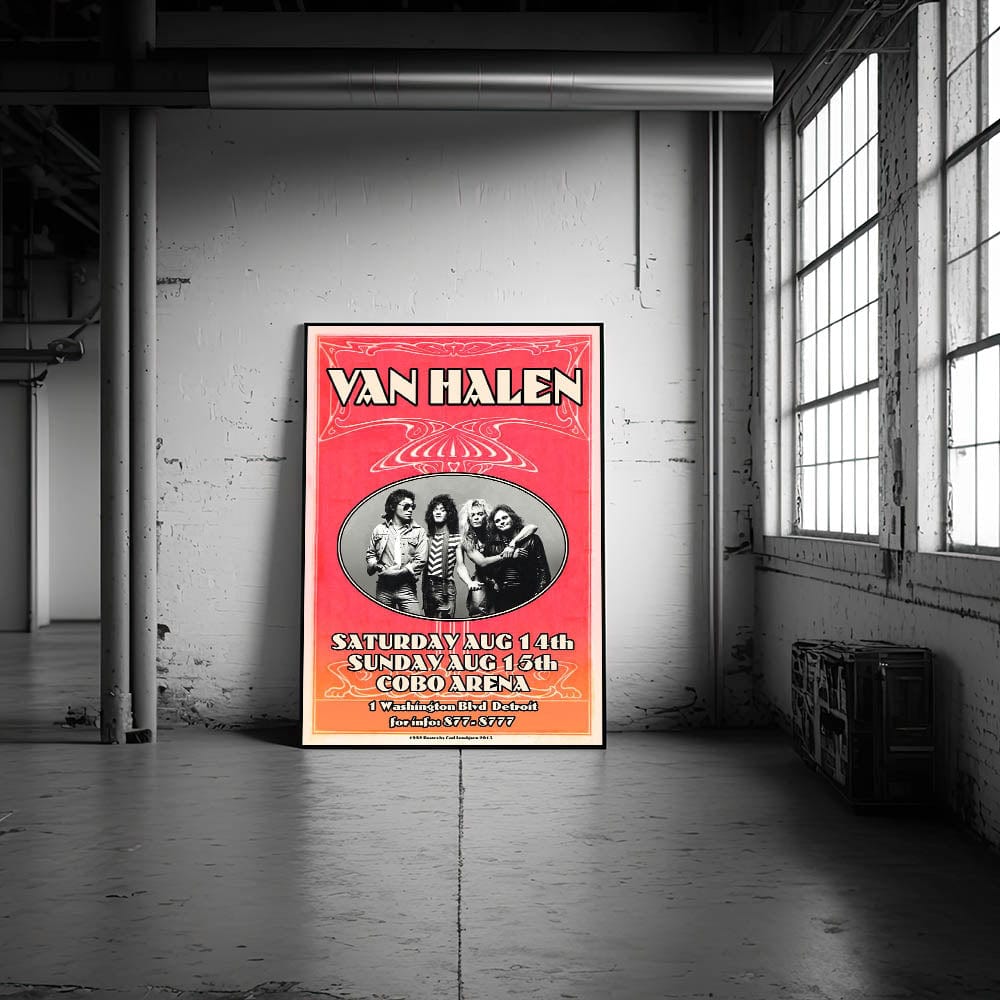 - High-quality reproduction of Van Halen’s 1982 concert poster from Cobo Arena