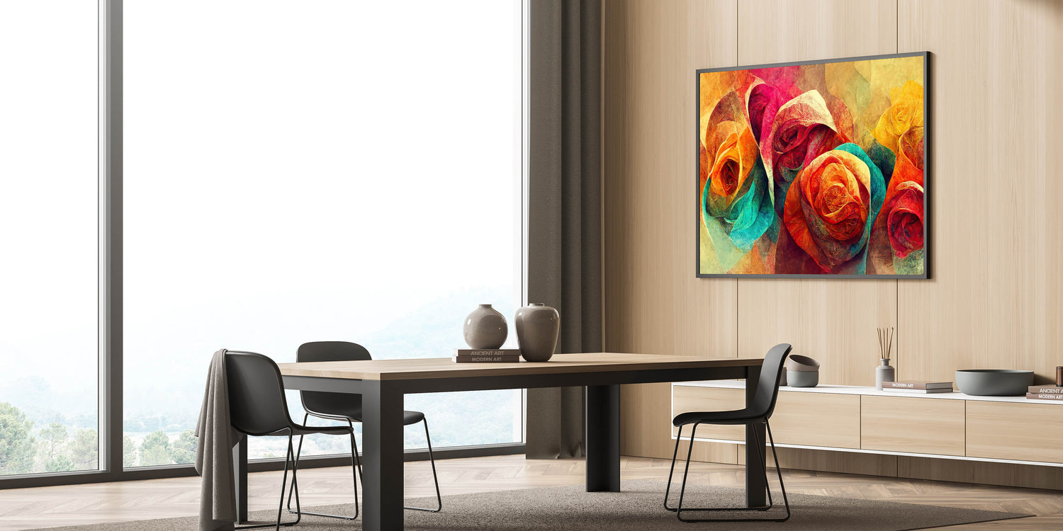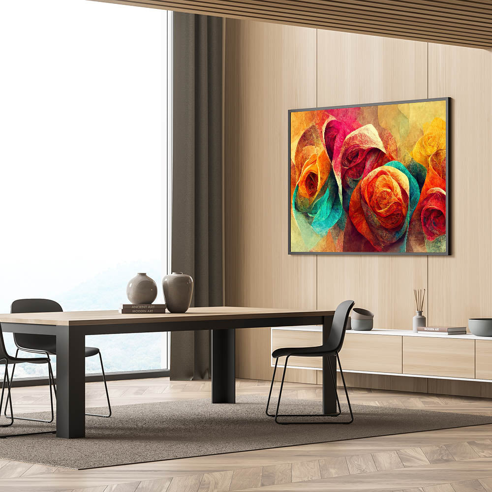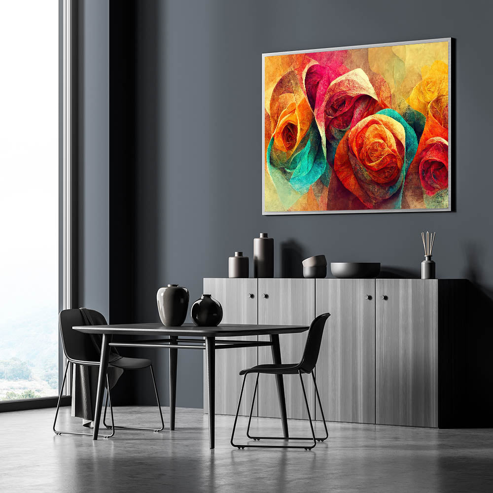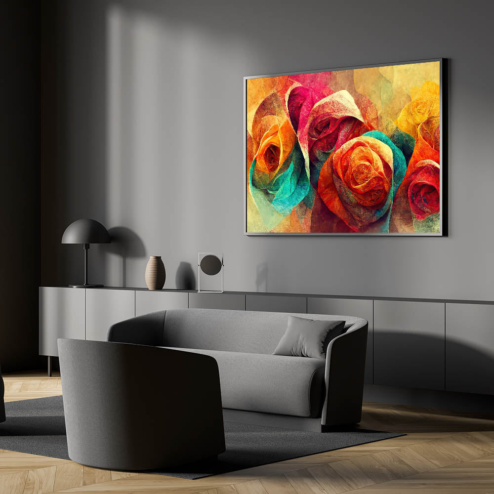 Vibrant Abstract Roses – Modern Multicolor Wall Art for Living Room