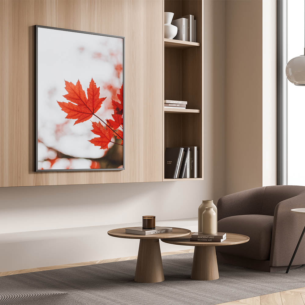 Transform your space with this fall canvas art, celebrating the iconic red maple leaves of autumn. Whether used as a statement piece or paired with other seasonal decor, this autumn wall art brings the elegance of fall indoors.