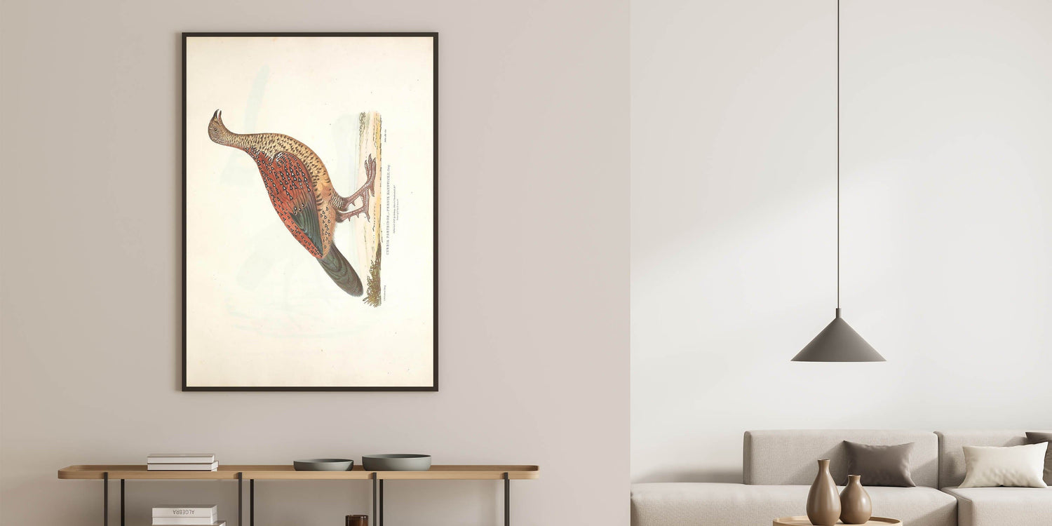 This vintage animal artwork is perfect for those who seek a unique piece of wildlife-inspired decor. Whether displayed in your living room, hallway, or office, this pheasant print will undoubtedly catch the eye and create a warm, inviting atmosphere.