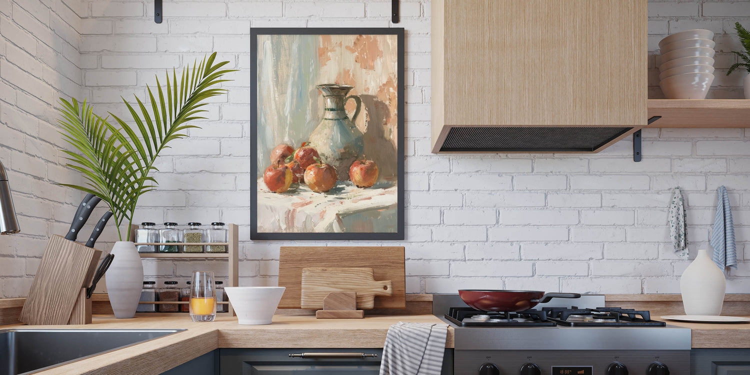 If you're searching for fruit art prints, fruit poster art, or a vintage-inspired kitchen decor piece, this apple still life painting is the perfect addition to your home.