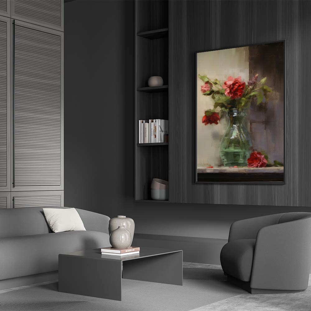This vintage botanical art print showcases a delicate arrangement of red and pink flowers in a glass vase, creating a soft, romantic atmosphere. The gentle brushstrokes and warm colors add depth and warmth to the composition, making this print a perfect piece for any space that needs a touch of nature’s beauty. Whether you prefer botanical illustration art or vintage style decor, this print brings a sense of serenity and elegance to your home.