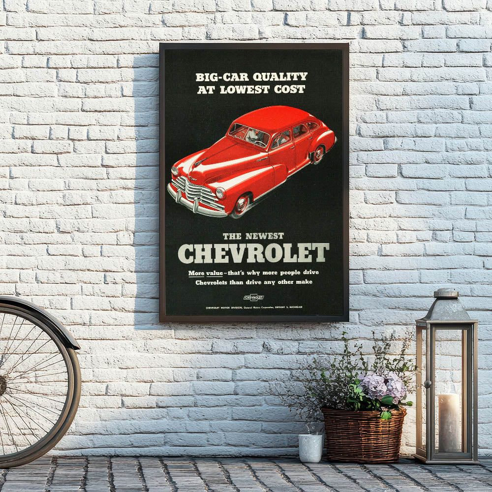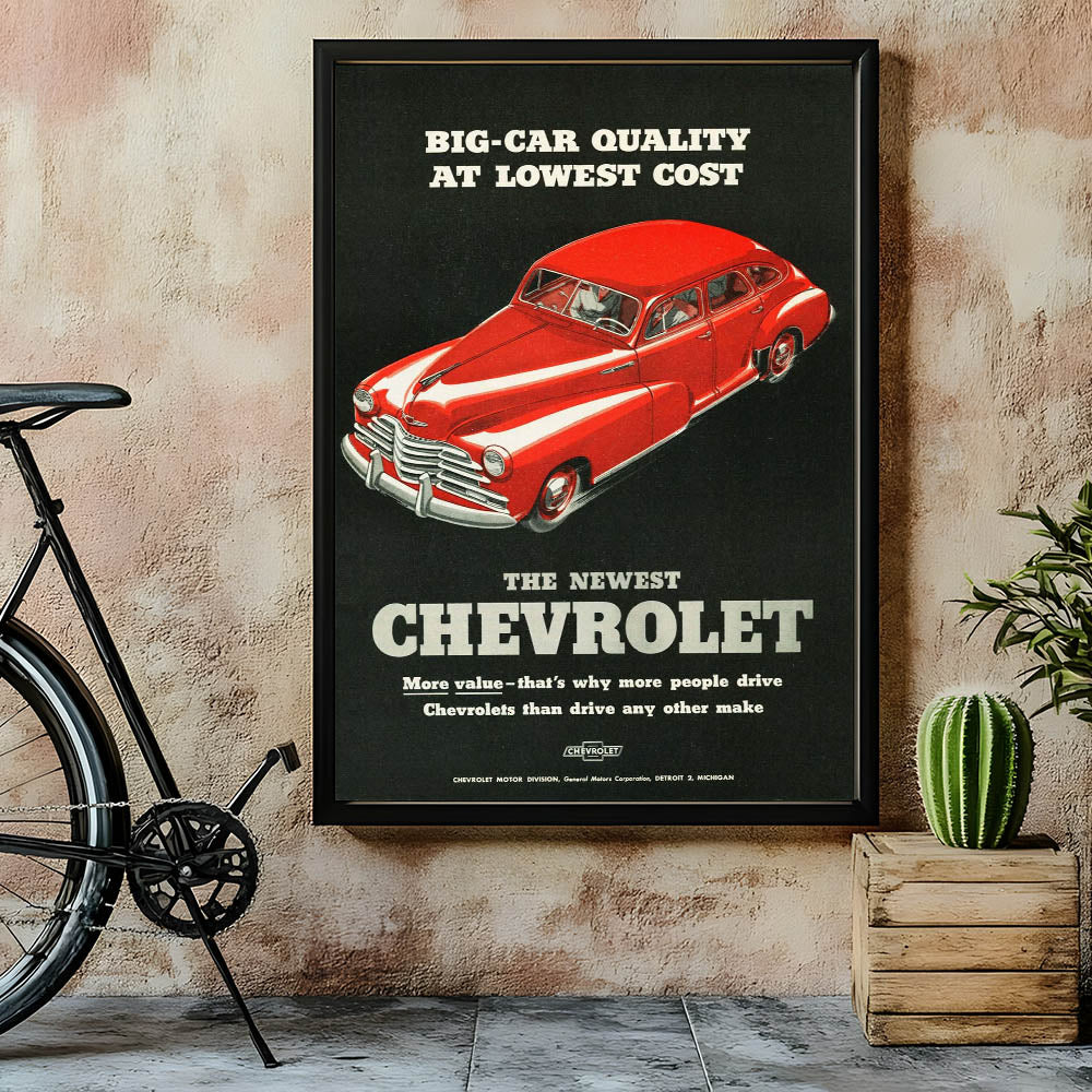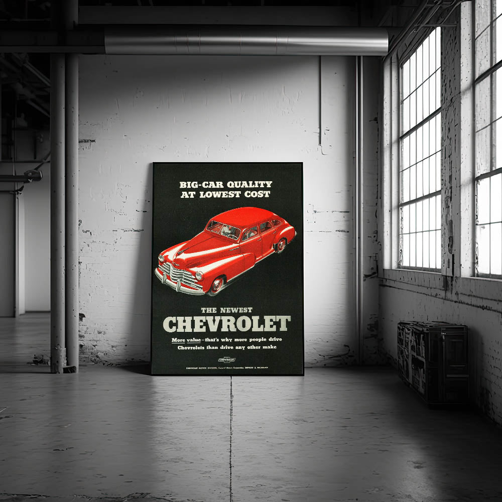 Vintage Chevrolet Car Ad Poster | Retro 1940s Auto Art