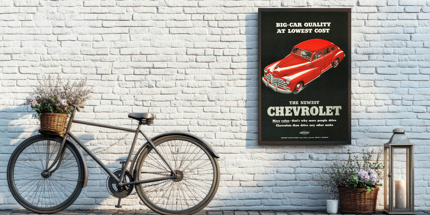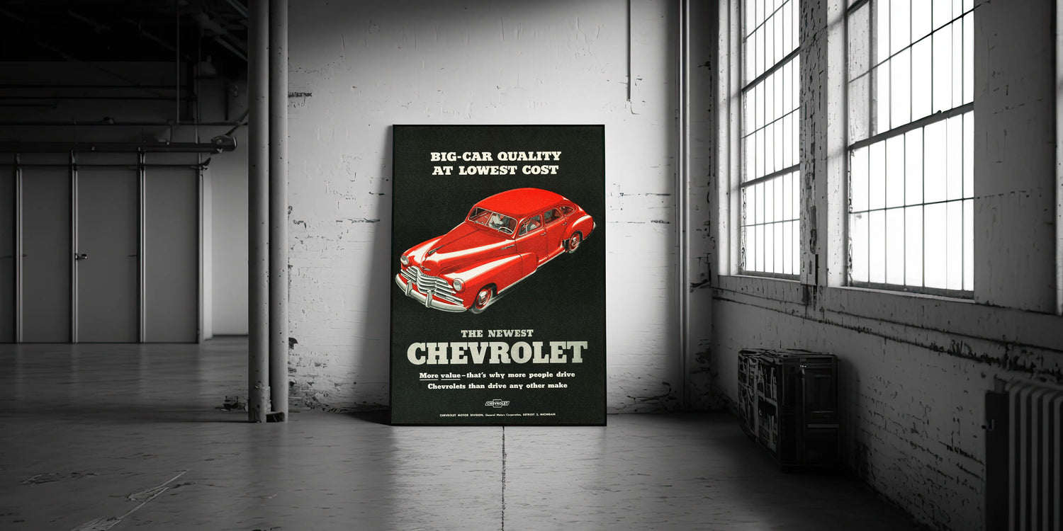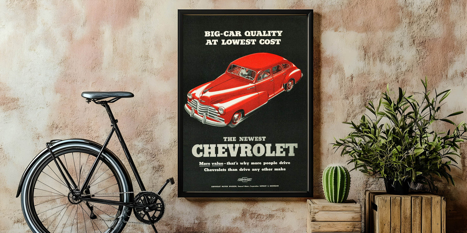 Vintage Chevrolet Car Ad Poster | Retro 1940s Auto Art
