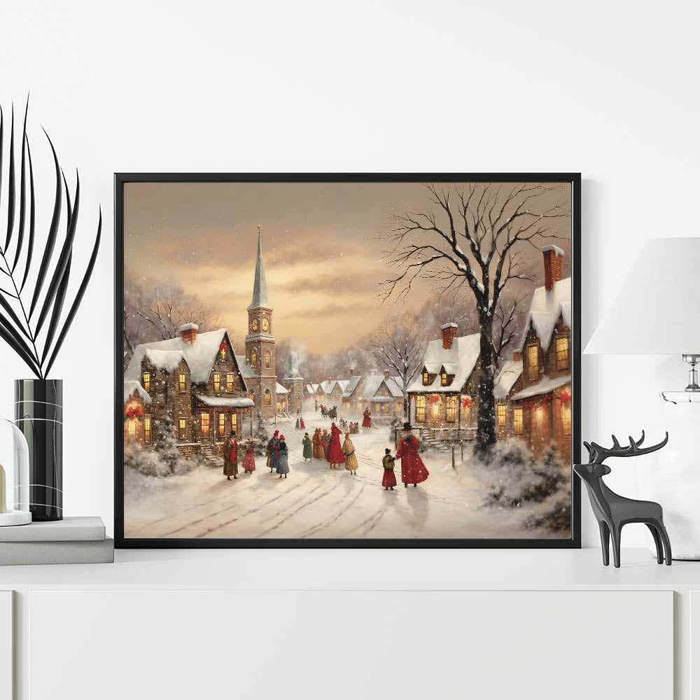 Step into a winter wonderland with this beautifully detailed Christmas Wall Hangings piece, featuring a charming snow-covered village illuminated by warm glowing lights. The rich color palette, nostalgic holiday atmosphere, and delicate snowfall create a timeless festive scene, making this artwork a perfect addition to your seasonal decor. Whether displayed in your living room, entryway, or dining space, this piece brings the magic of a classic Christmas to your home.