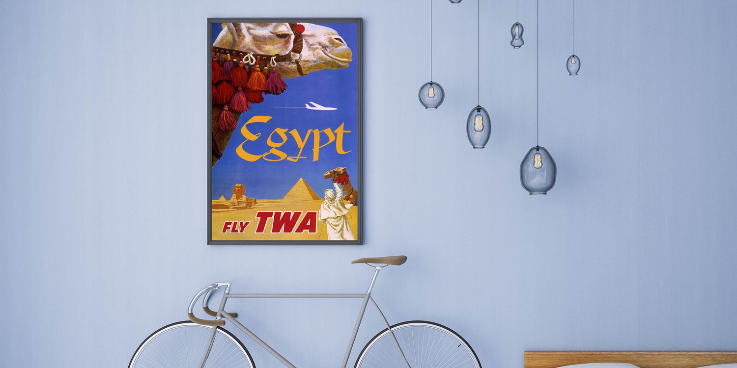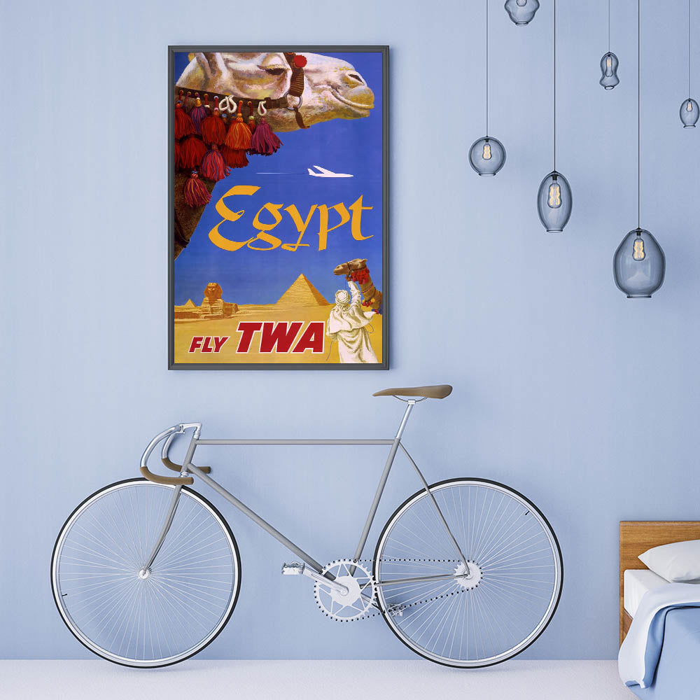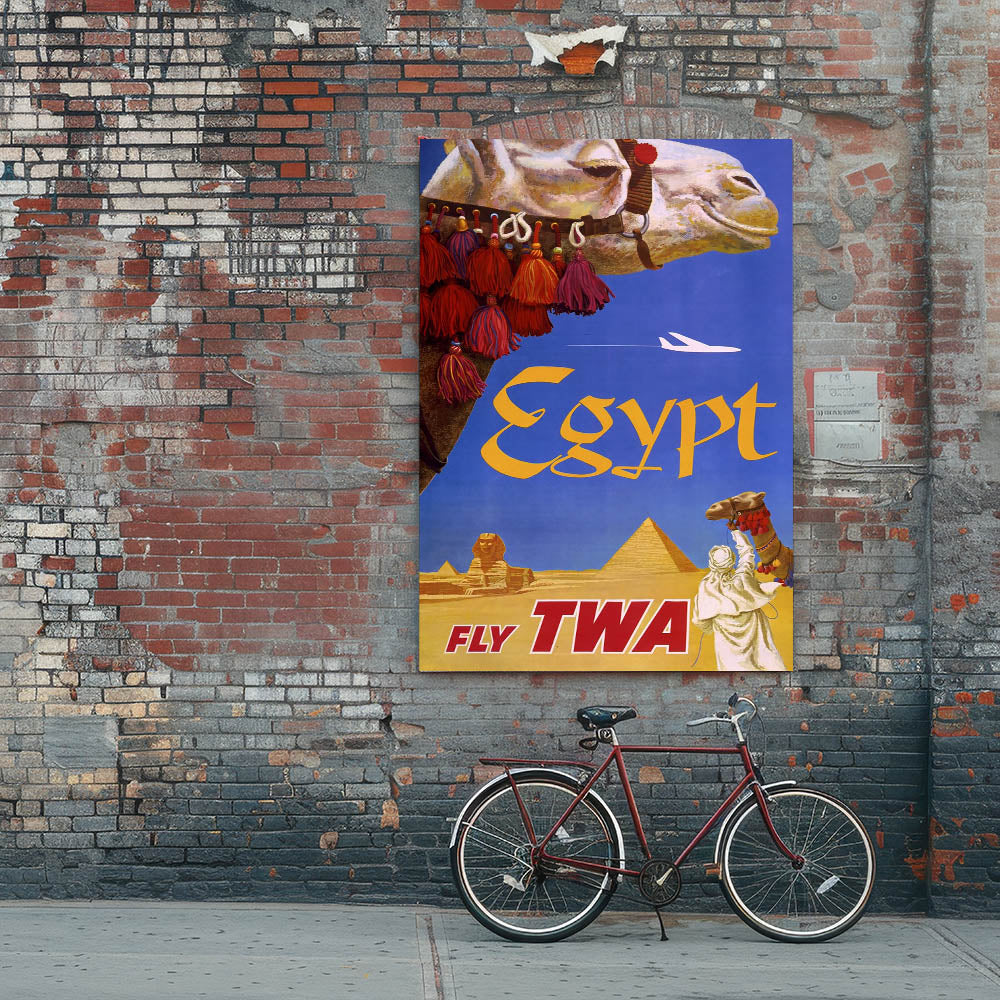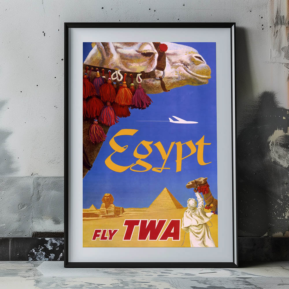 Vintage Egypt Travel Poster – Retro TWA Pyramids and Camel Art