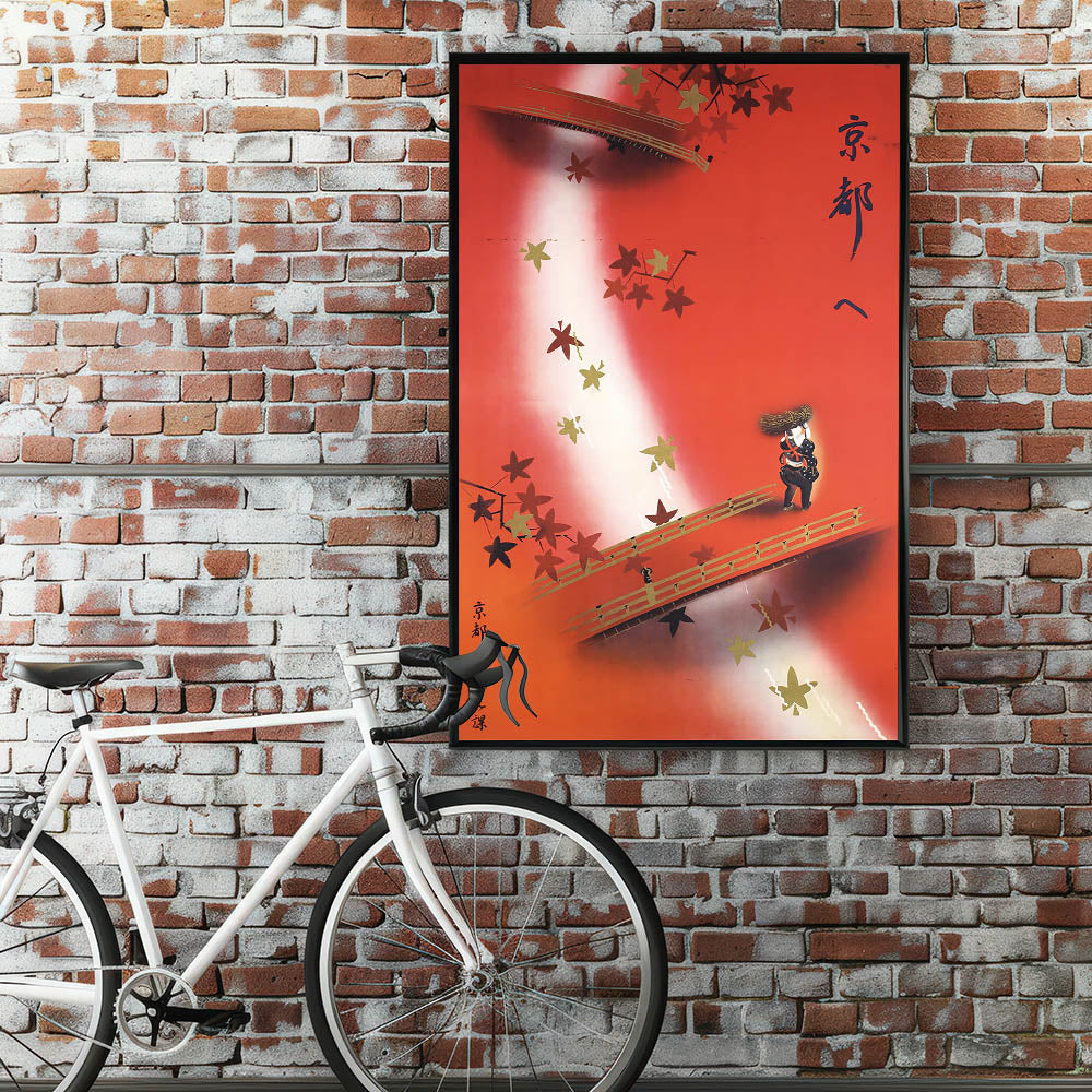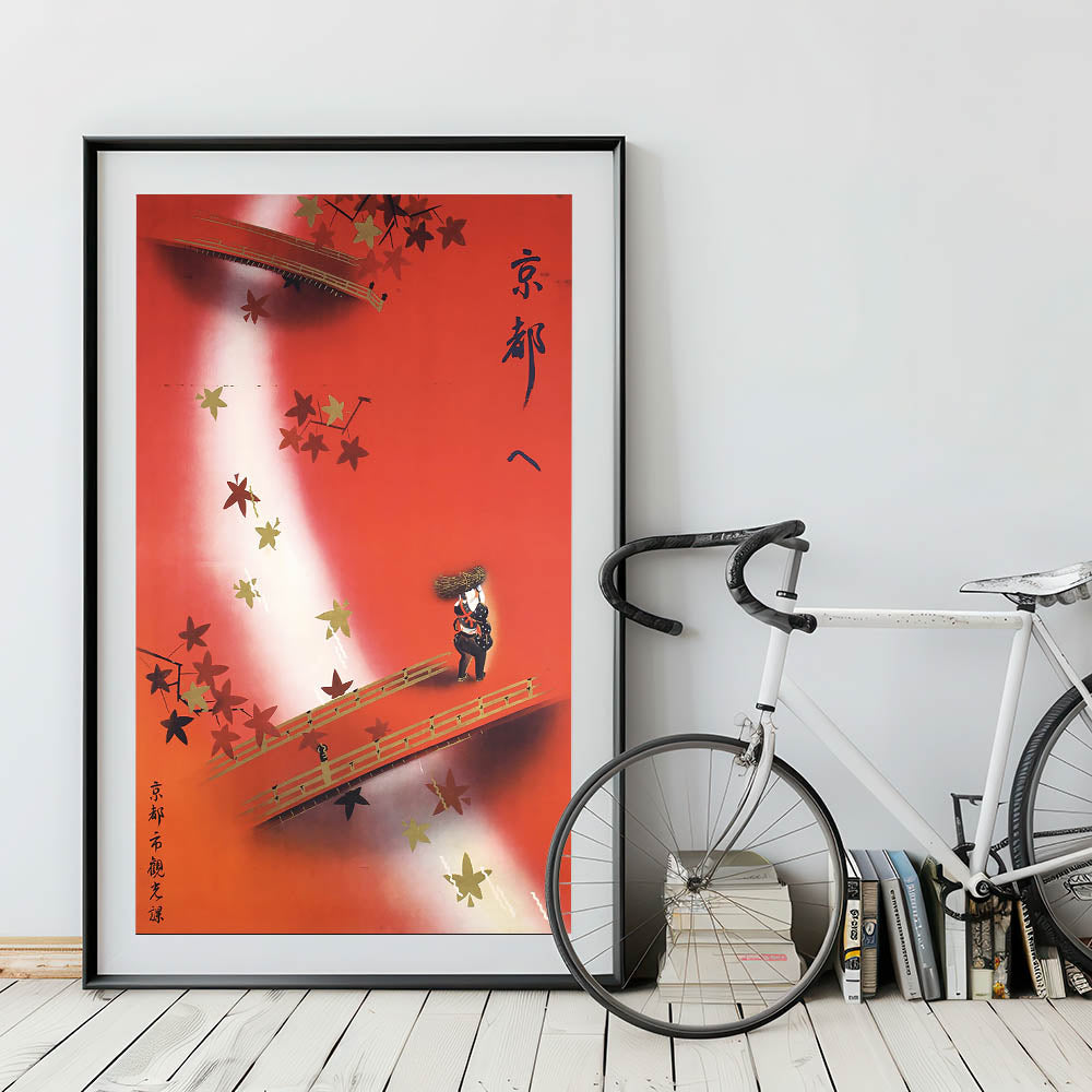 Vintage Kyoto Travel Poster – Retro Japanese Autumn Bridge Art