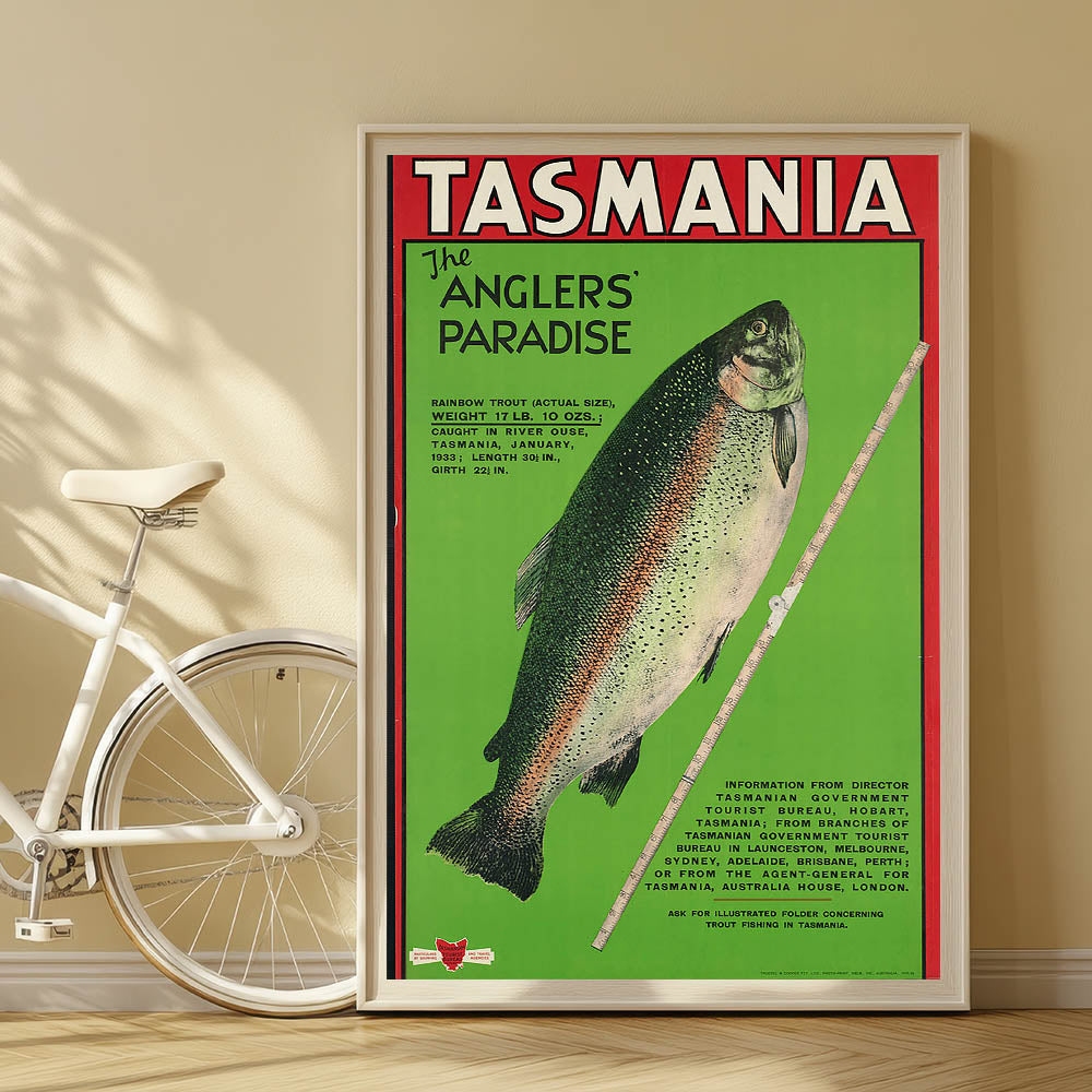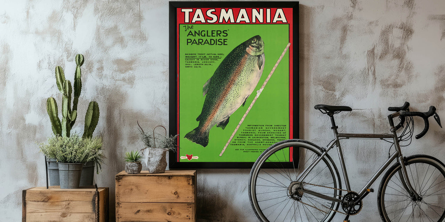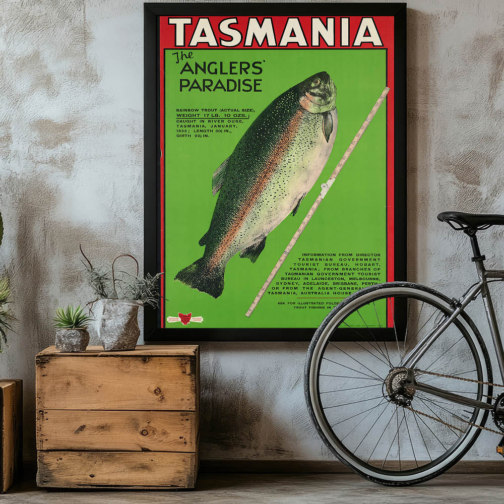 Vintage Tasmania Fishing Poster – Retro Angler’s Paradise Art