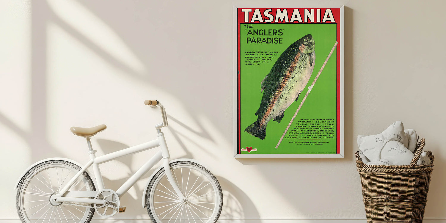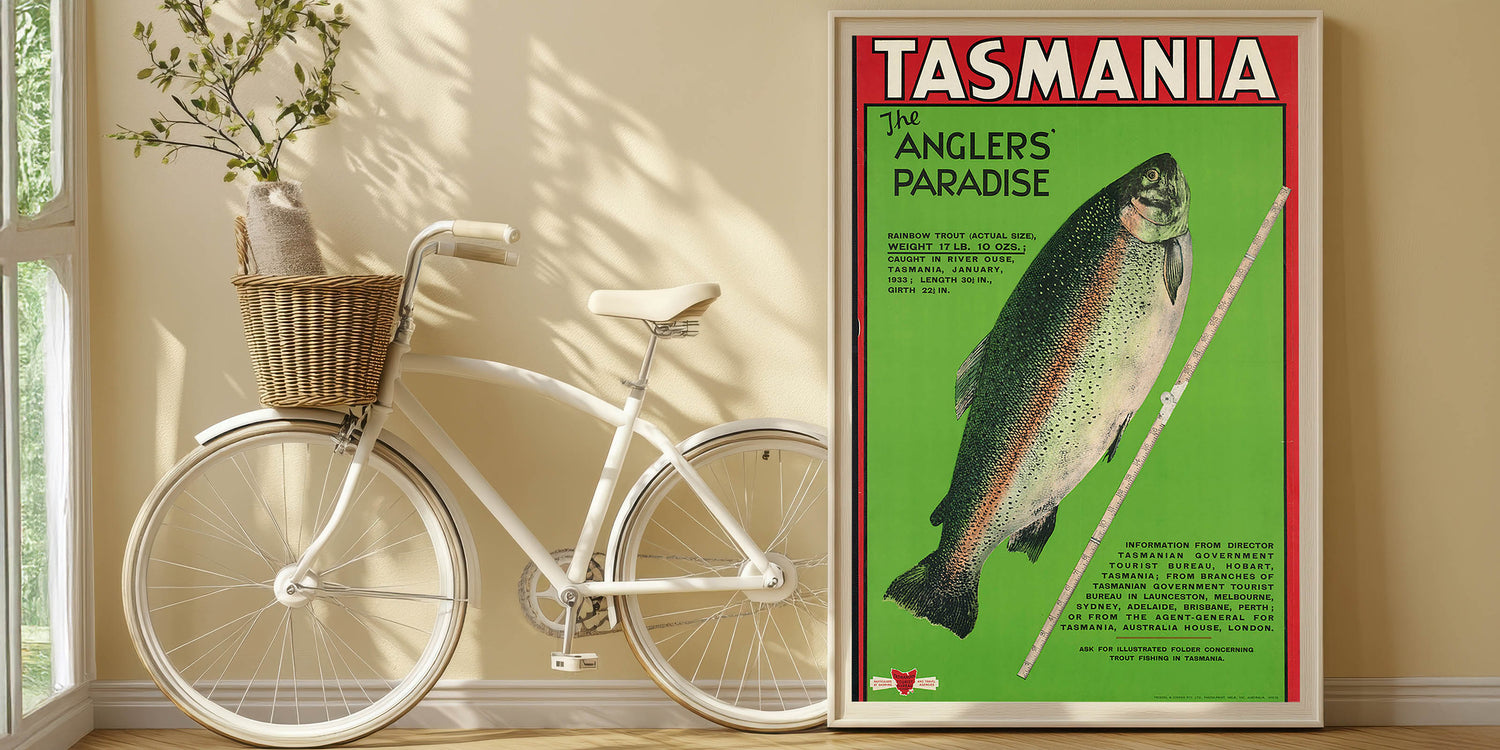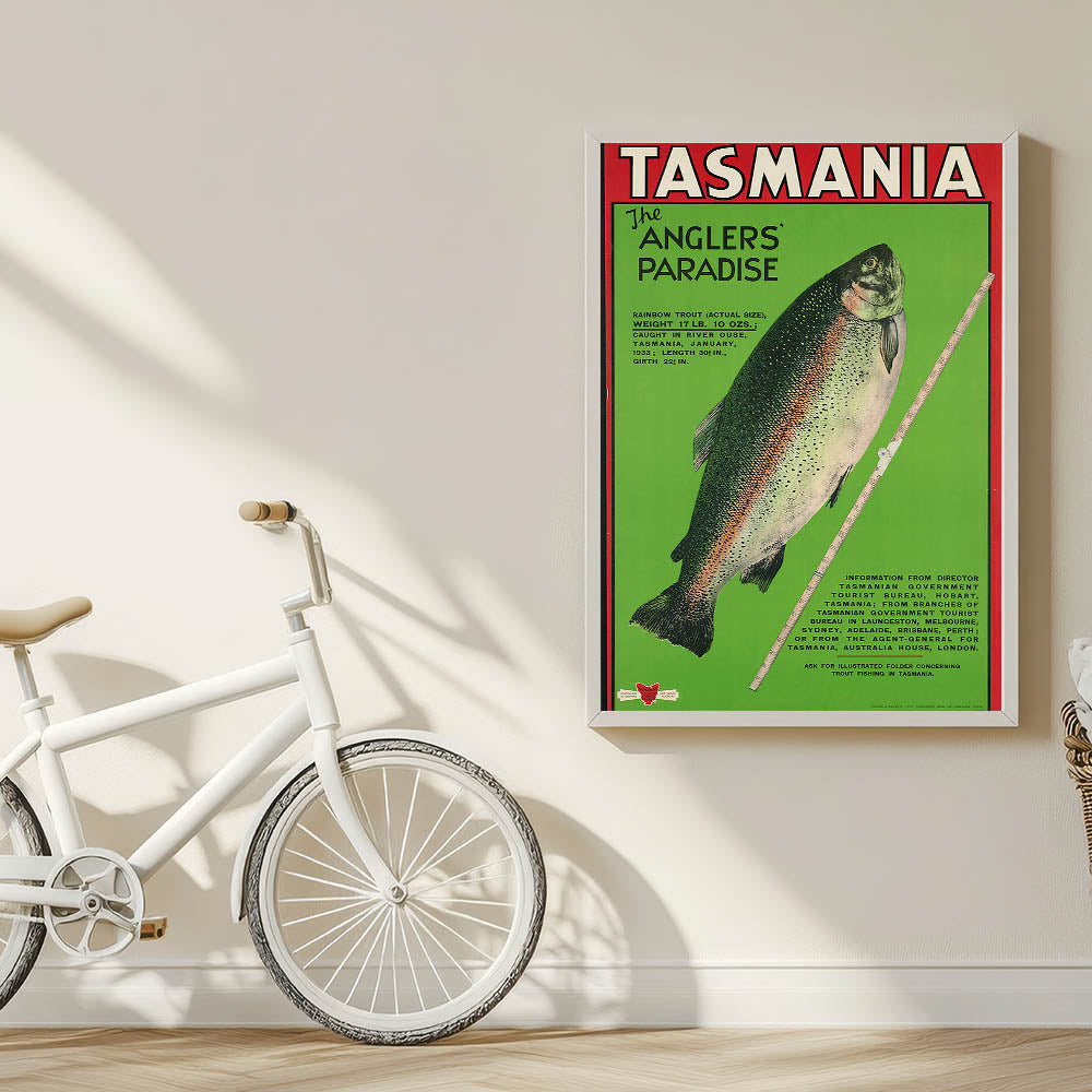 Vintage Tasmania Fishing Poster – Retro Angler’s Paradise Art