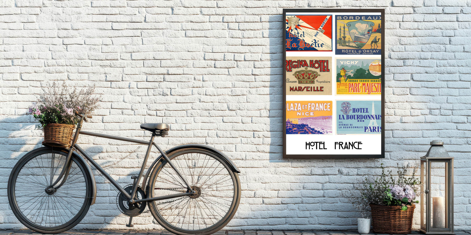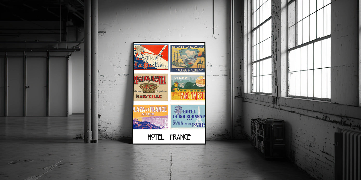 Capture the charm of classic French hospitality with our Vintage Travel Posters - French Hotel Collection. This timeless travel art set features nostalgic hotel advertisements from iconic cities like Paris, Marseille, and Bordeaux. The authentic vintage travel art design brings a touch of Old World elegance to any space.