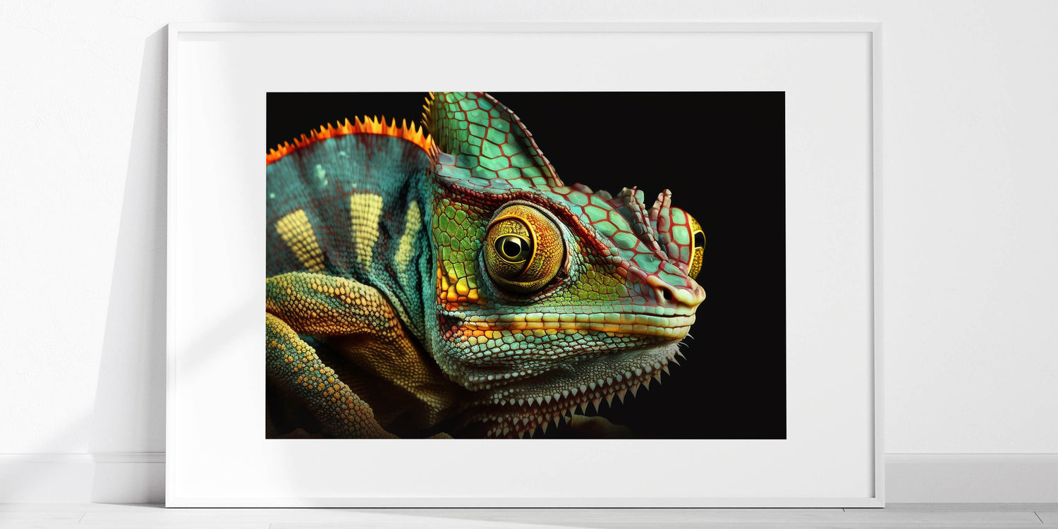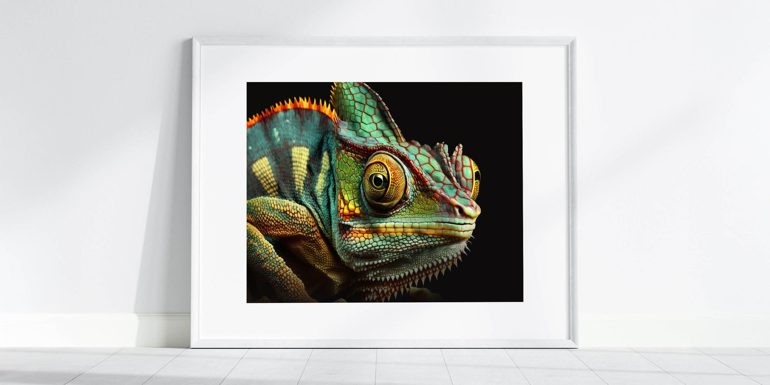 - High-definition printing that brings out every detail and color of the chameleon's unique appearance.