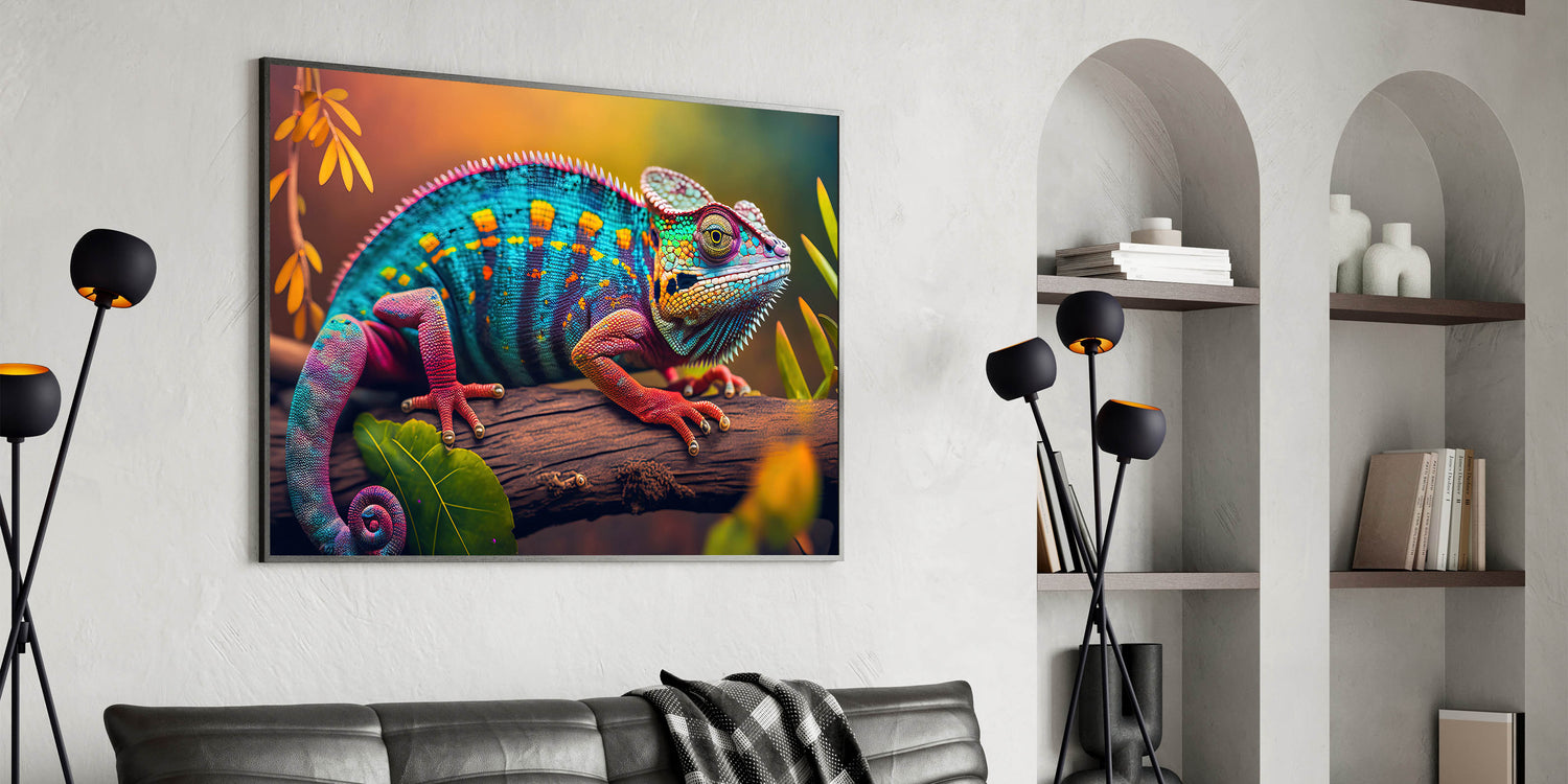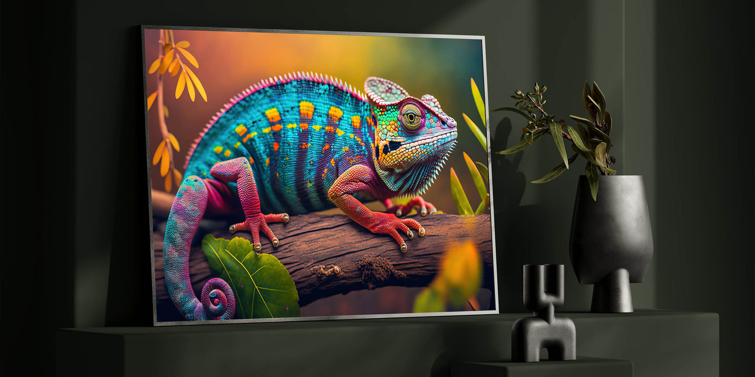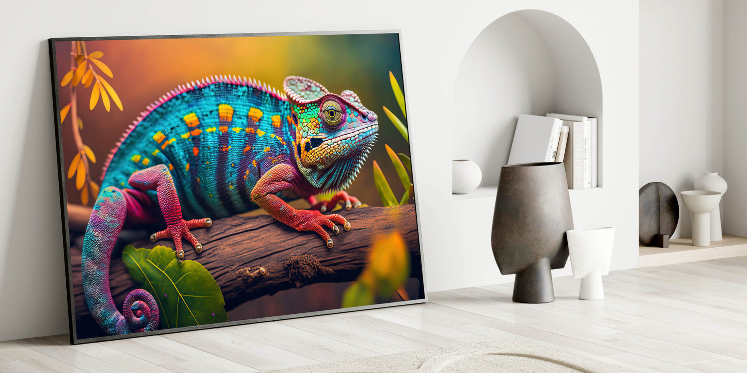 - High-quality printing that preserves the vivid colors and fine details of the chameleon.