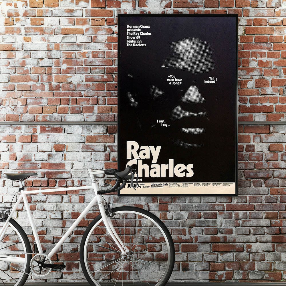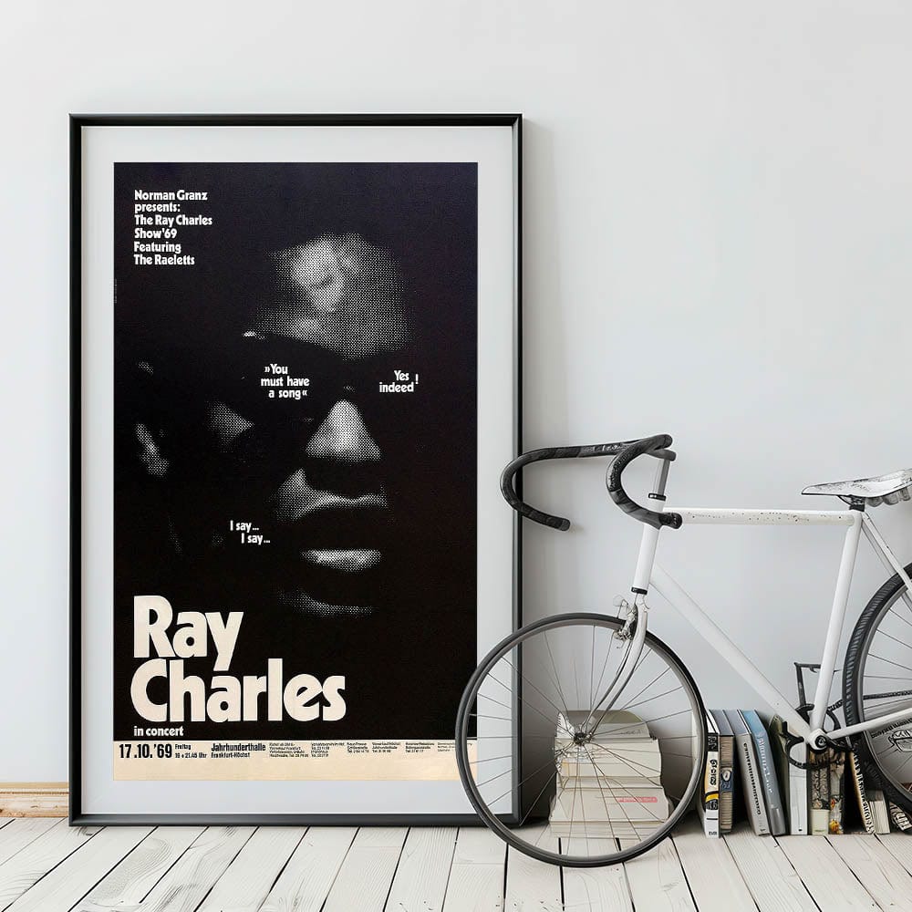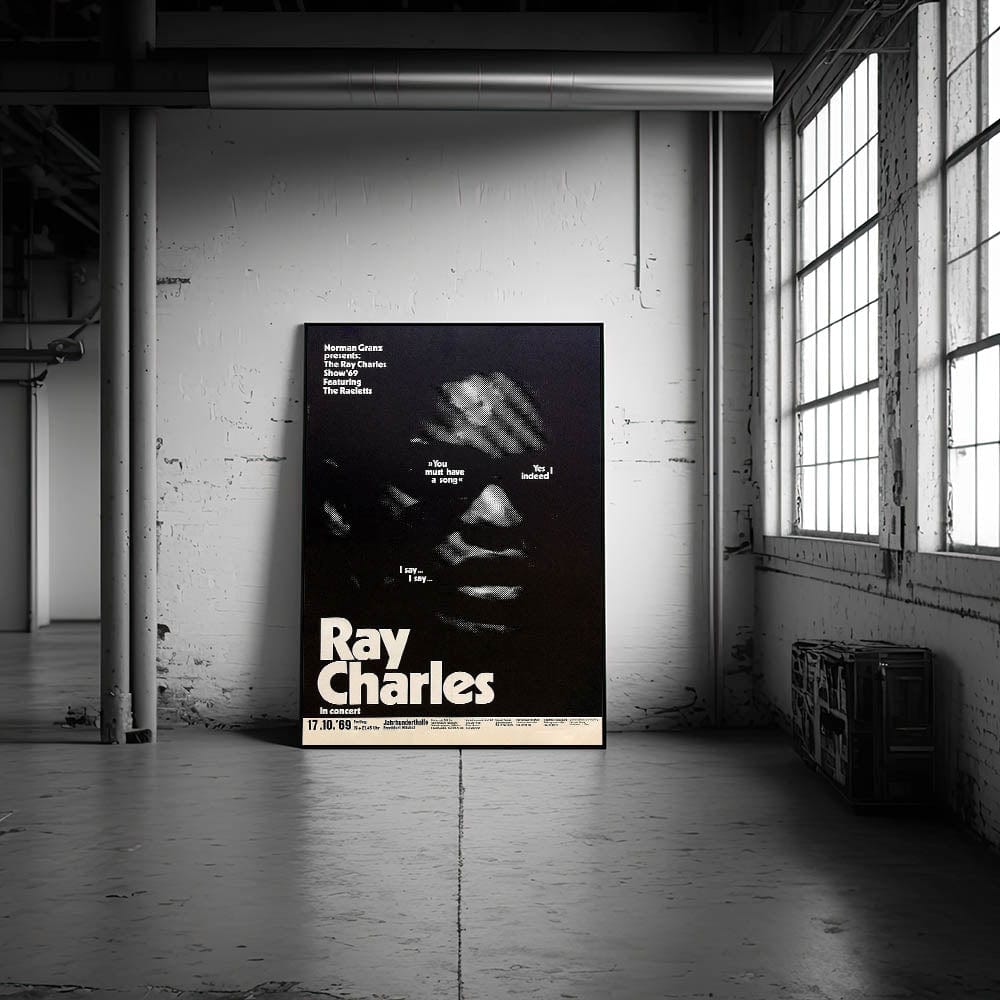 Ray Charles 1969 Concert Poster | Vintage Black & White Wall Art