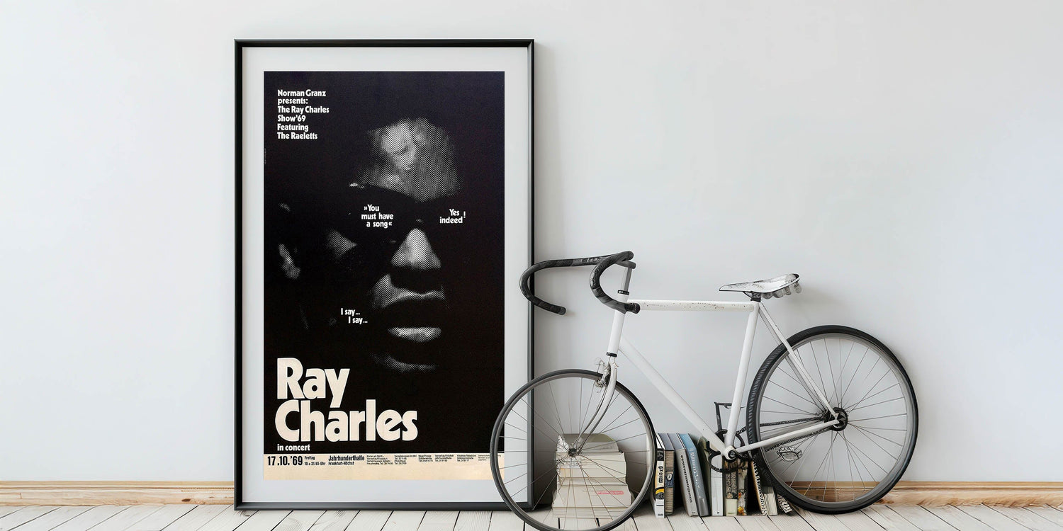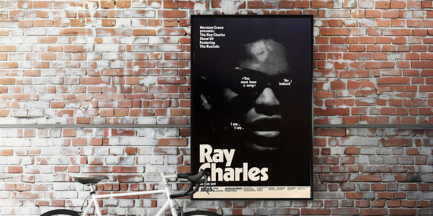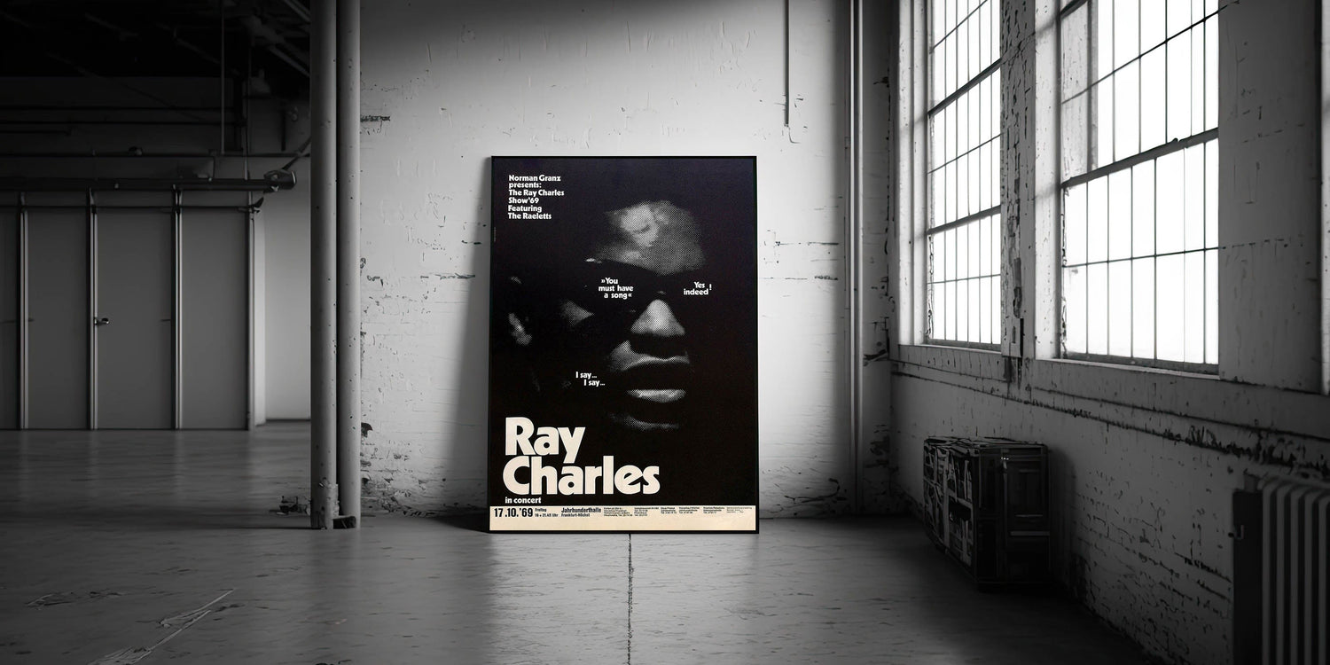 Ray Charles 1969 Concert Poster | Vintage Black & White Wall Art