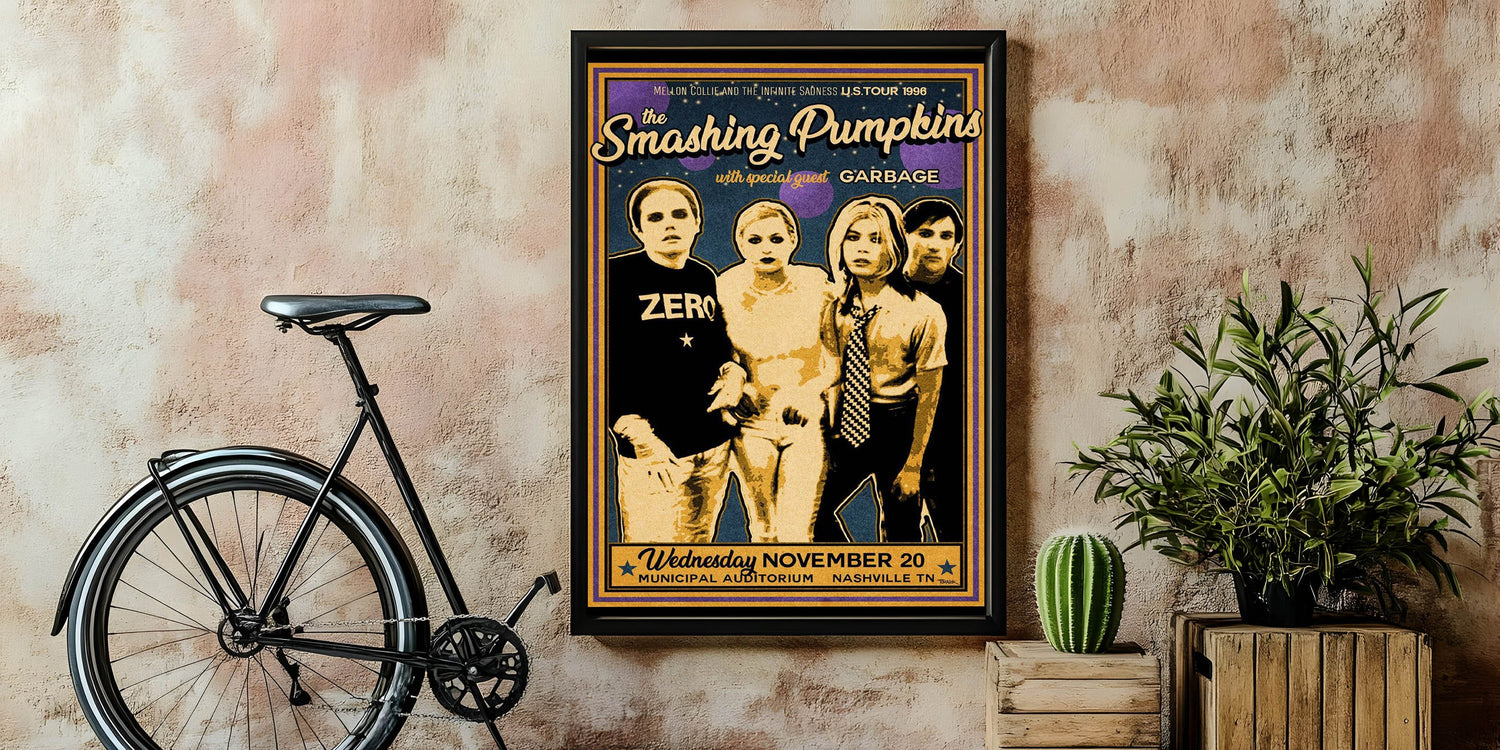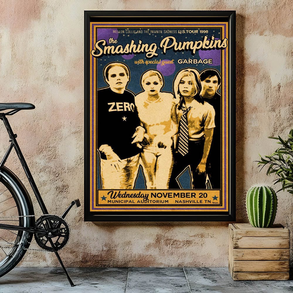 Whether you’re a long-time fan of the Smashing Pumpkins or new to their music, this retro poster art will elevate your room with its bold, nostalgic presence. Add this iconic piece to your home and embrace the retro vibes of one of the greatest rock bands of the 90s.
