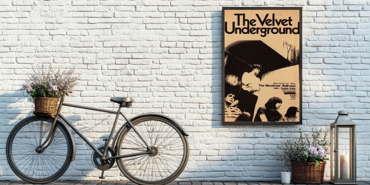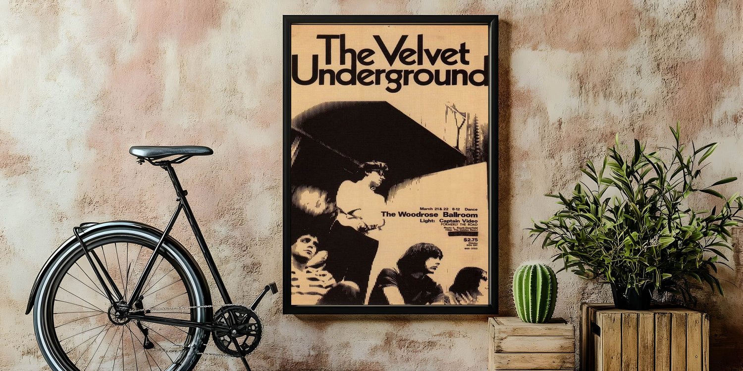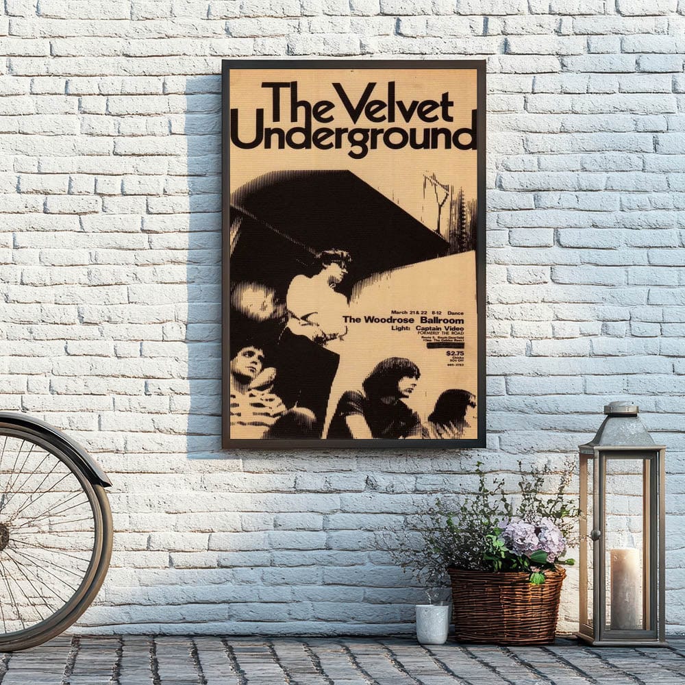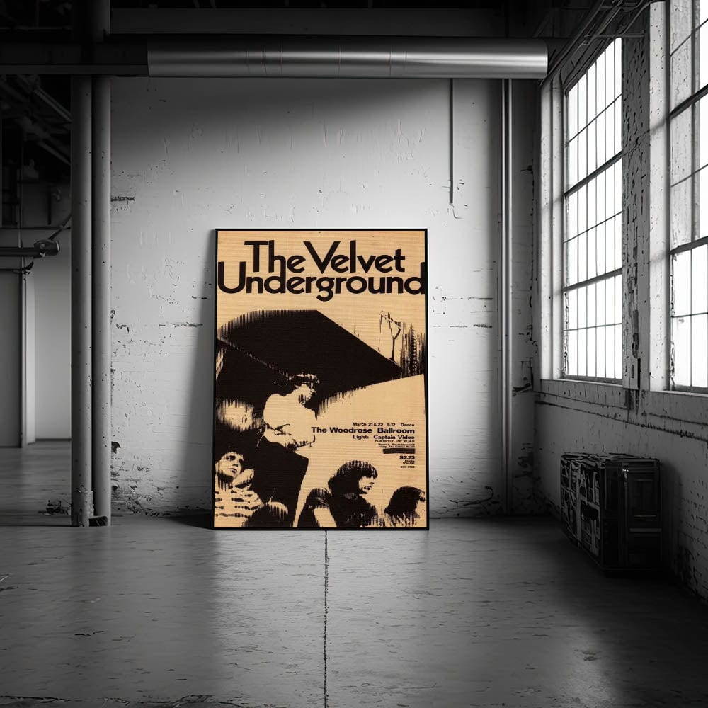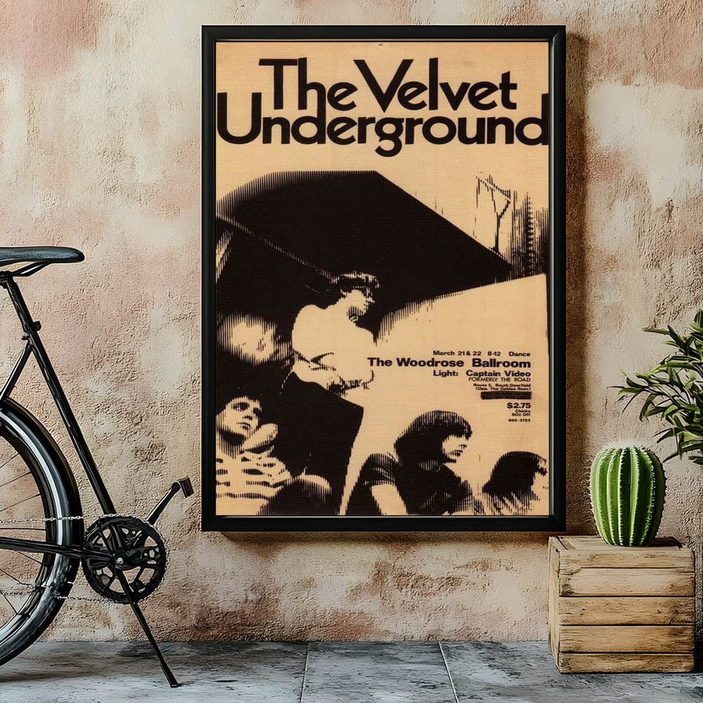 Step back in time with this iconic The Velvet Underground concert poster from their performance at The Woodrose Ballroom. Featuring a black-and-white design that exudes retro aesthetic, this vintage print captures the raw energy of the 1960s underground music scene. The minimalist design, featuring the band in a striking halftone style, makes it a perfect addition for fans of vintage music art and nostalgic art prints.