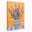 Add a burst of vibrant color and modern charm to your home with this eye-catching electric wall art featuring a striking lavender arrangement in a striped vase. The bold orange background contrasts beautifully with the deep purples and blues of the lavender, creating a dynamic and energetic piece. Perfect for kitchens, dining rooms, or living spaces, this electric artwork brings both warmth and freshness to any room.