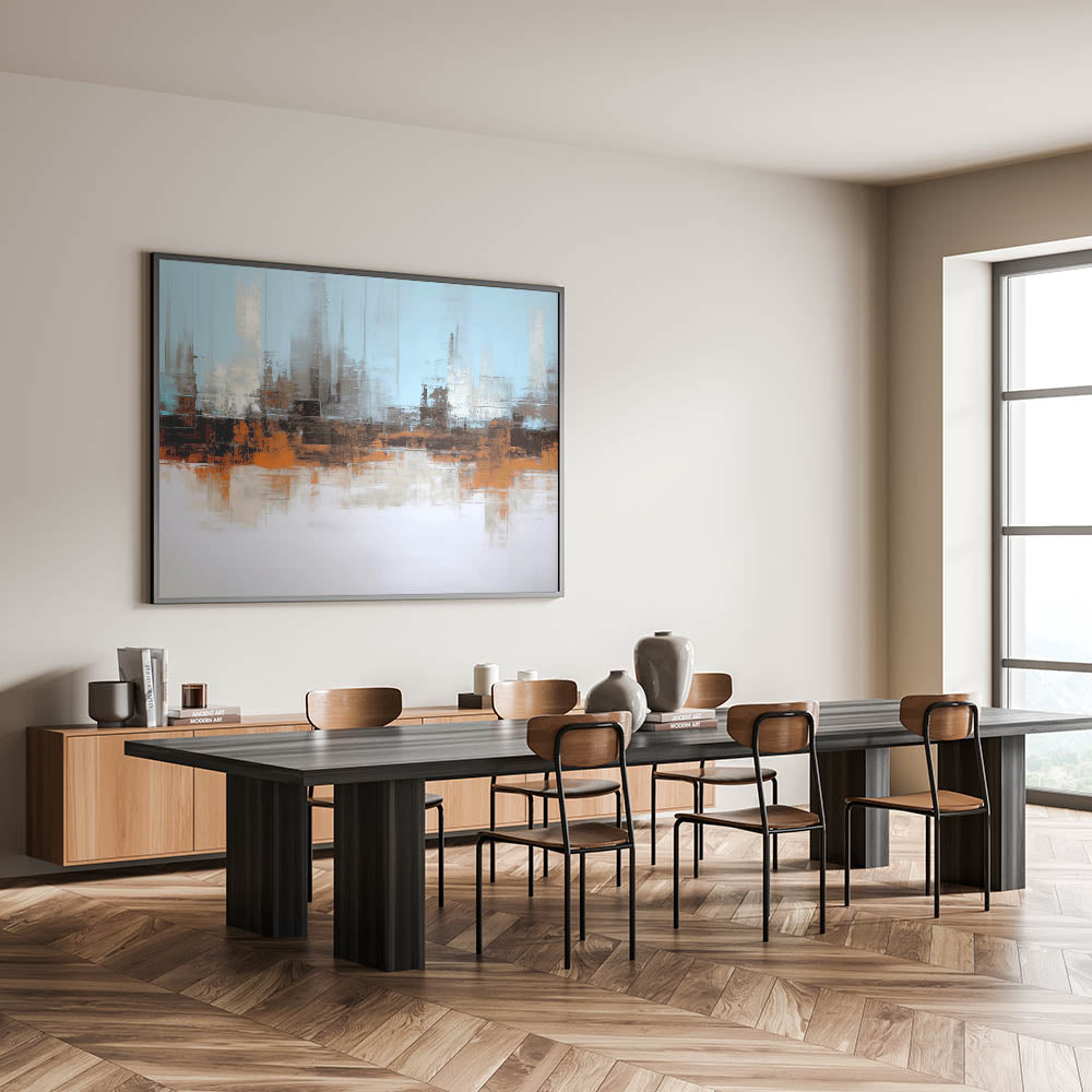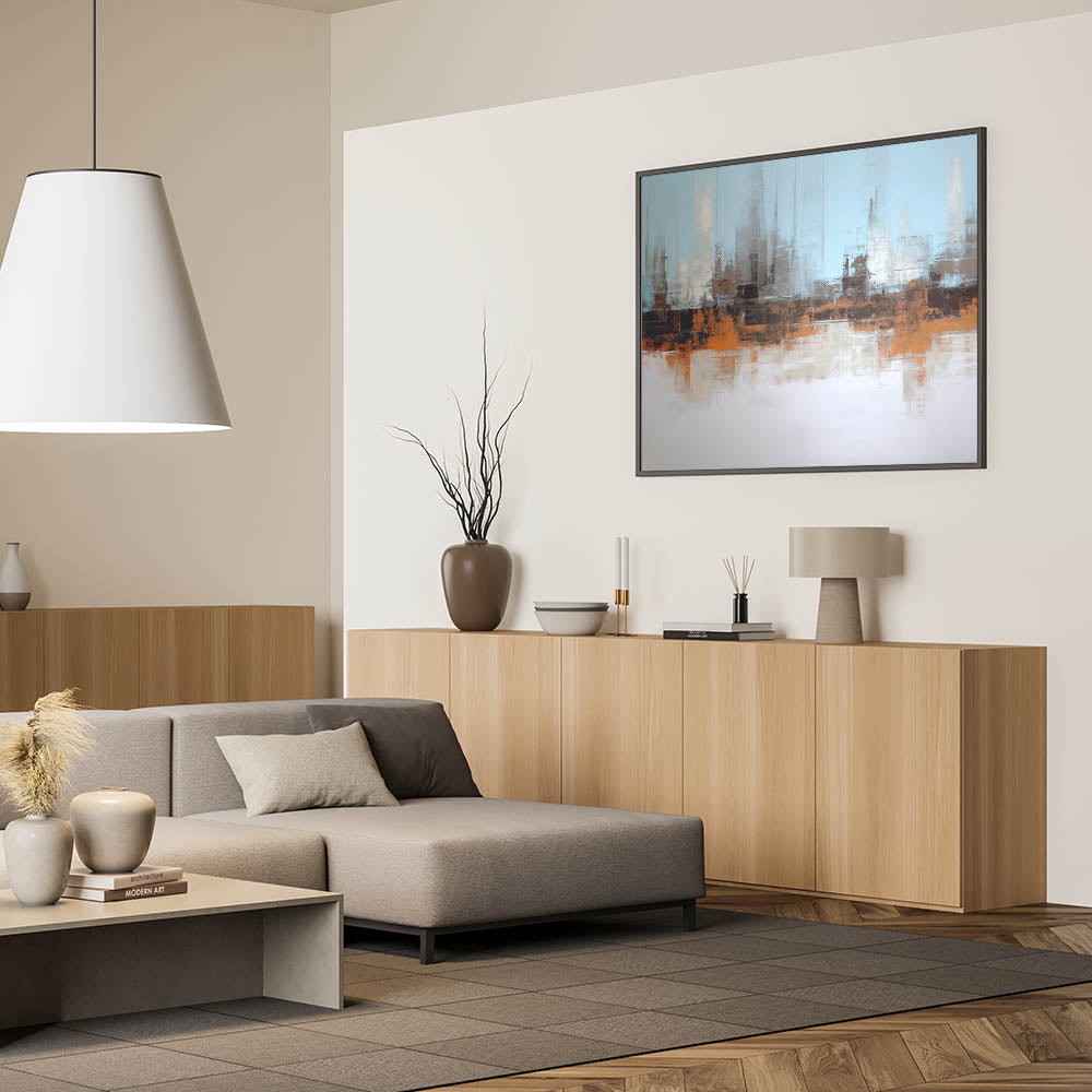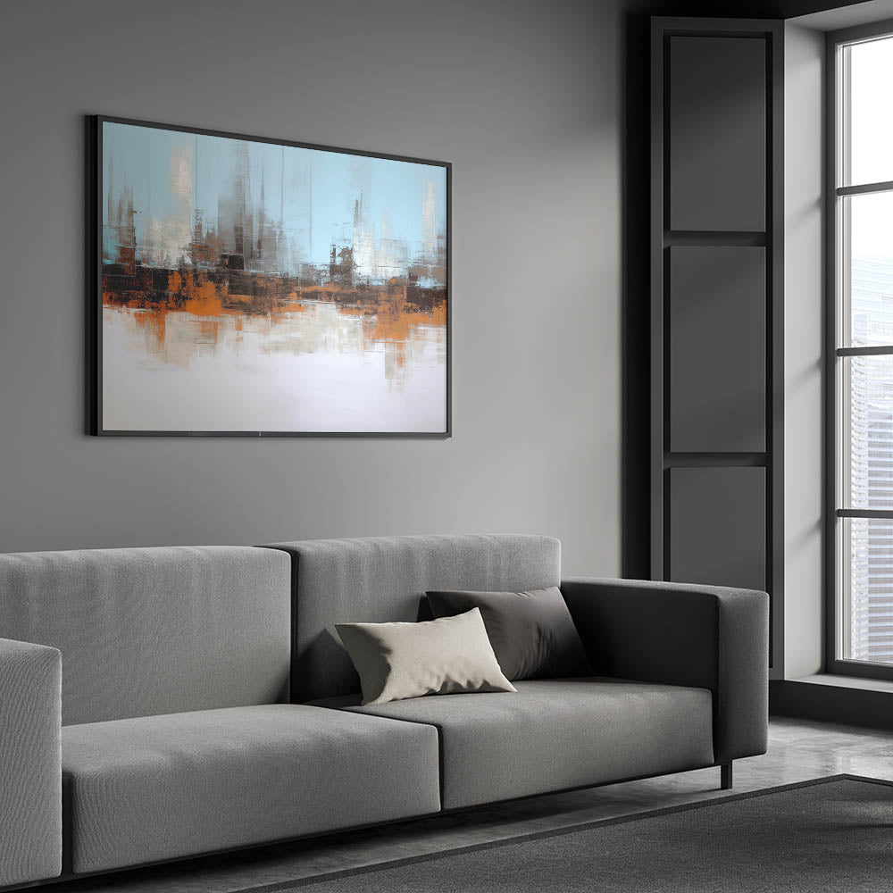 Add a touch of modern elegance to your decor with our "Modern Earthy and Blue Abstract Strokes and Lines Art." This striking piece features a harmonious blend of earthy tones and cool blues, capturing the beauty of abstract urban landscapes. Perfect for contemporary homes and offices, this artwork brings a sense of sophistication and style to any space.