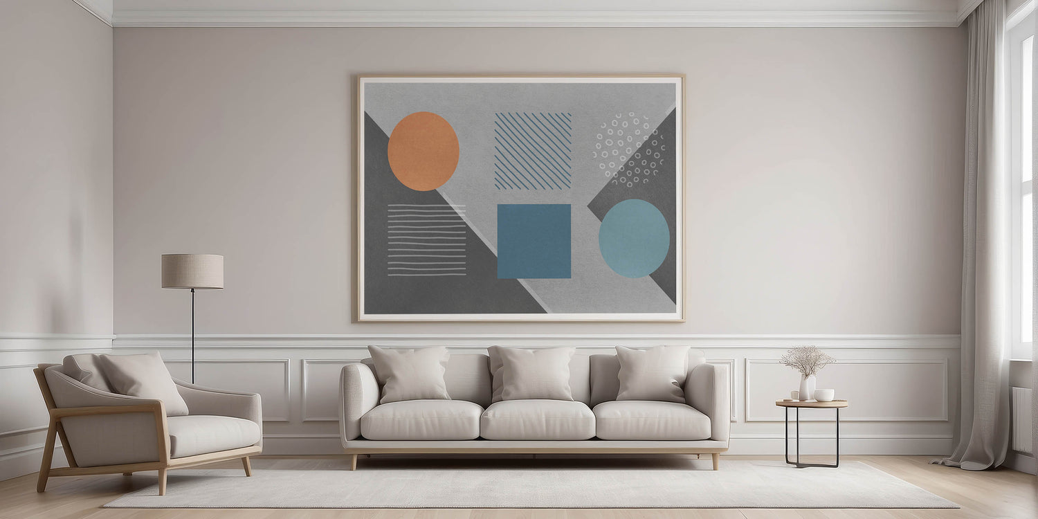 This unique geometric abstract art is a stunning example of modern design, created to captivate and inspire. Whether you're looking to enhance your living room, bedroom, or workspace, this creative geometric print is an ideal choice. Enjoy the high-quality craftsmanship and the artistic flair this piece brings to your interior decor.