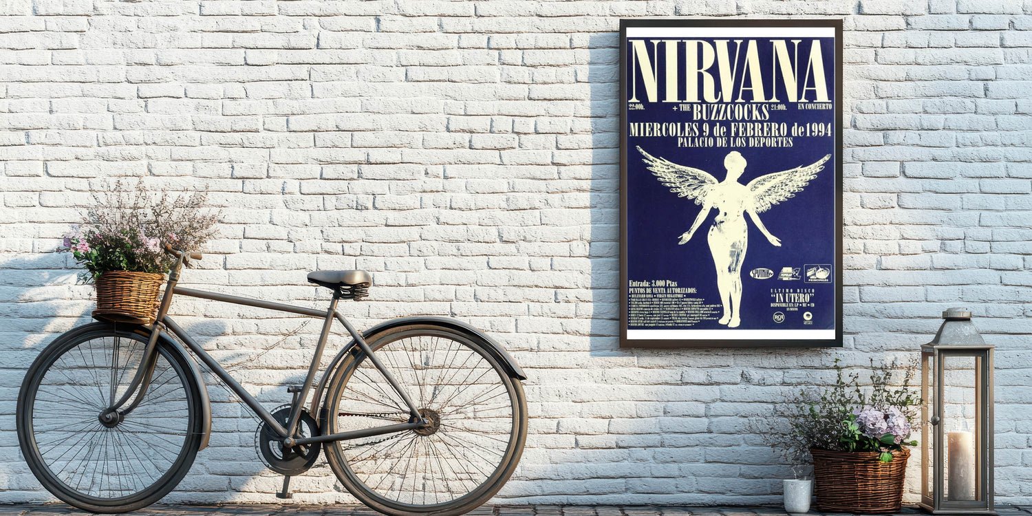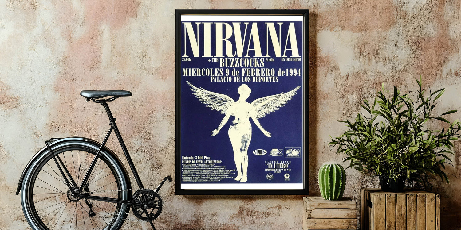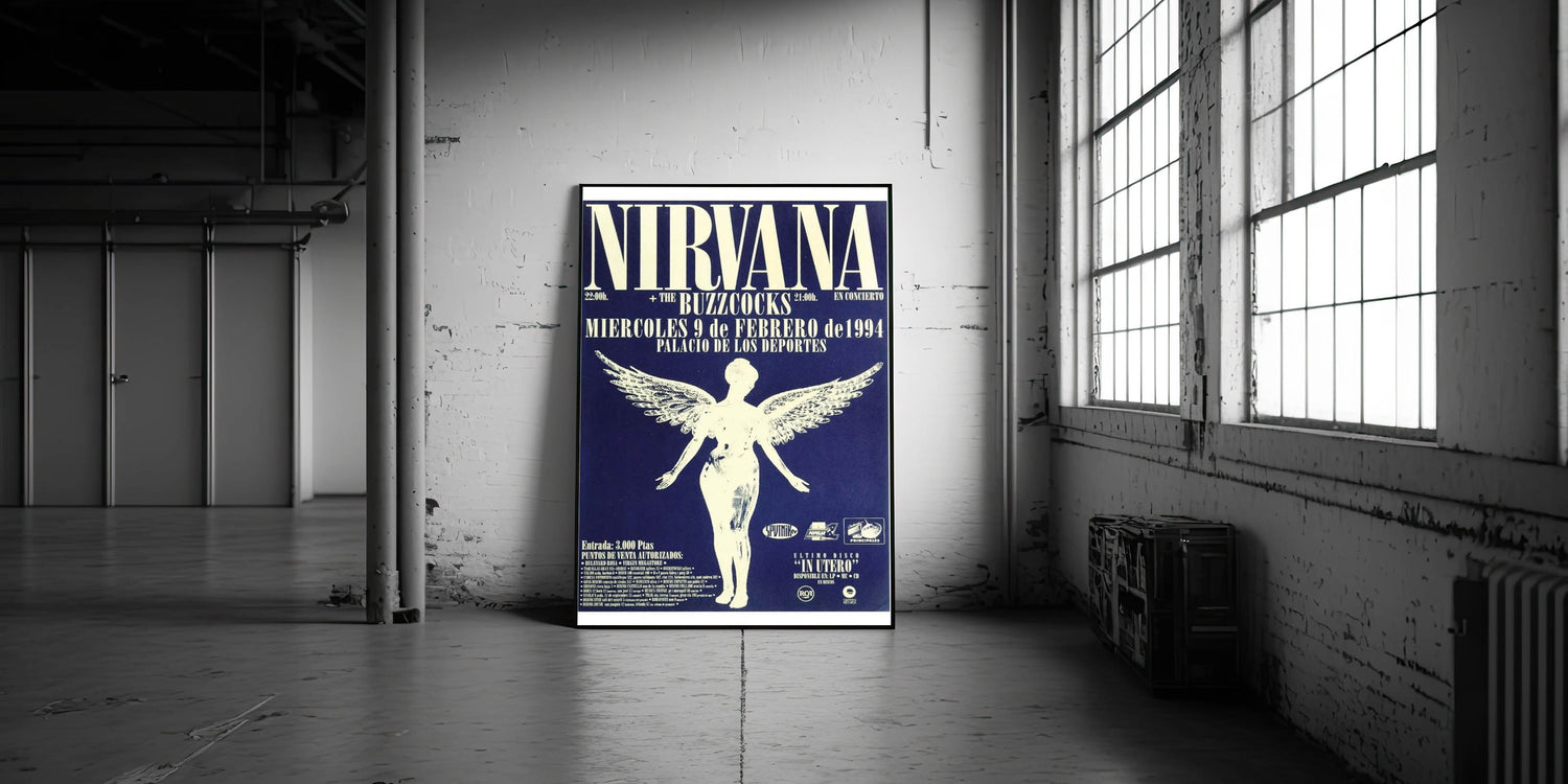 Relive the energy of Nirvana’s 1994 live performance with this iconic concert poster, featuring the band’s angelic graphic and bold text on a striking blue backdrop. This vintage poster captures the essence of 90s rock culture, making it a must-have for fans of the band and collectors of classic retro art. The detailed design and powerful contrast between the blue and white tones make this a standout piece for any music lover's collection.