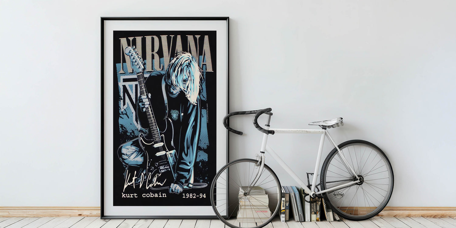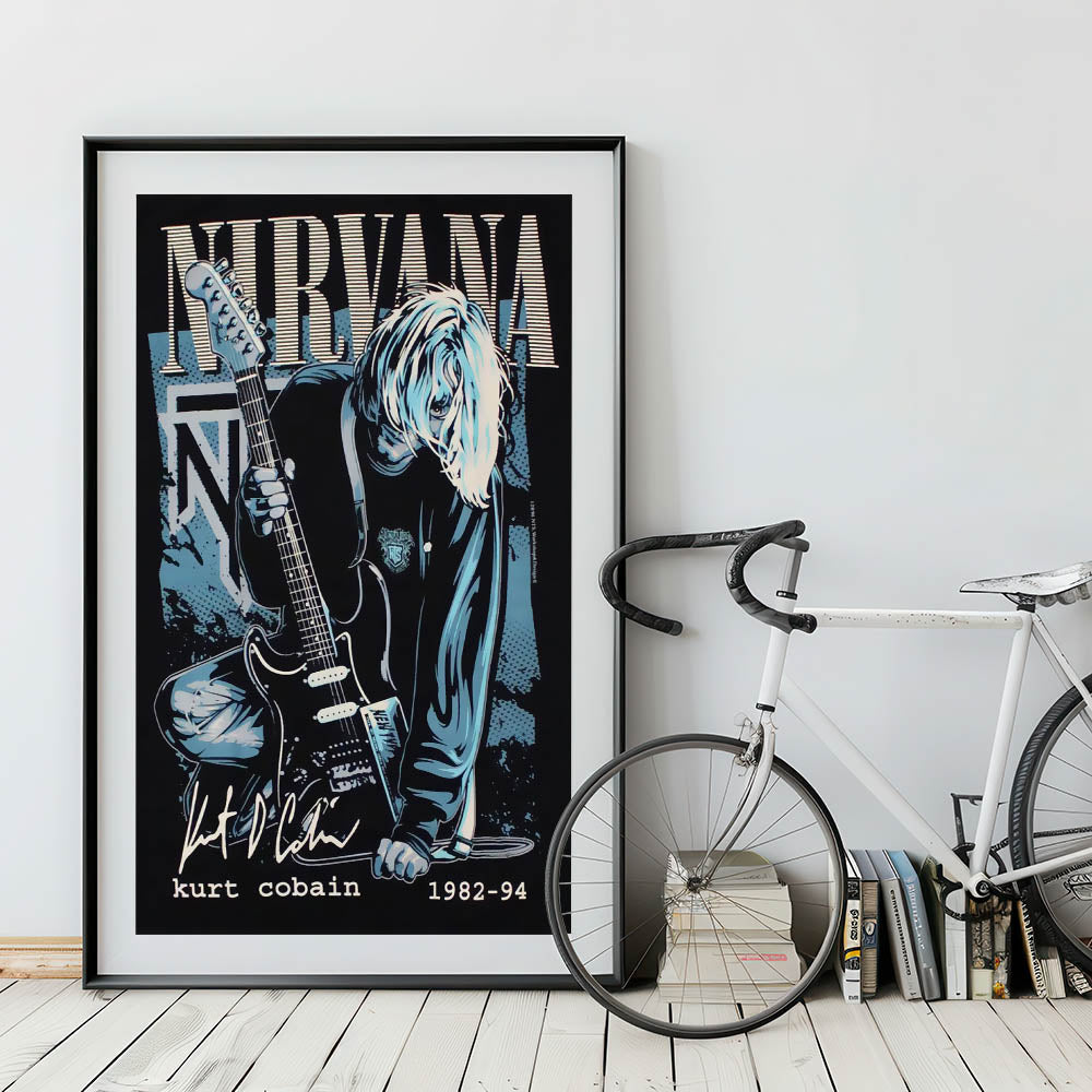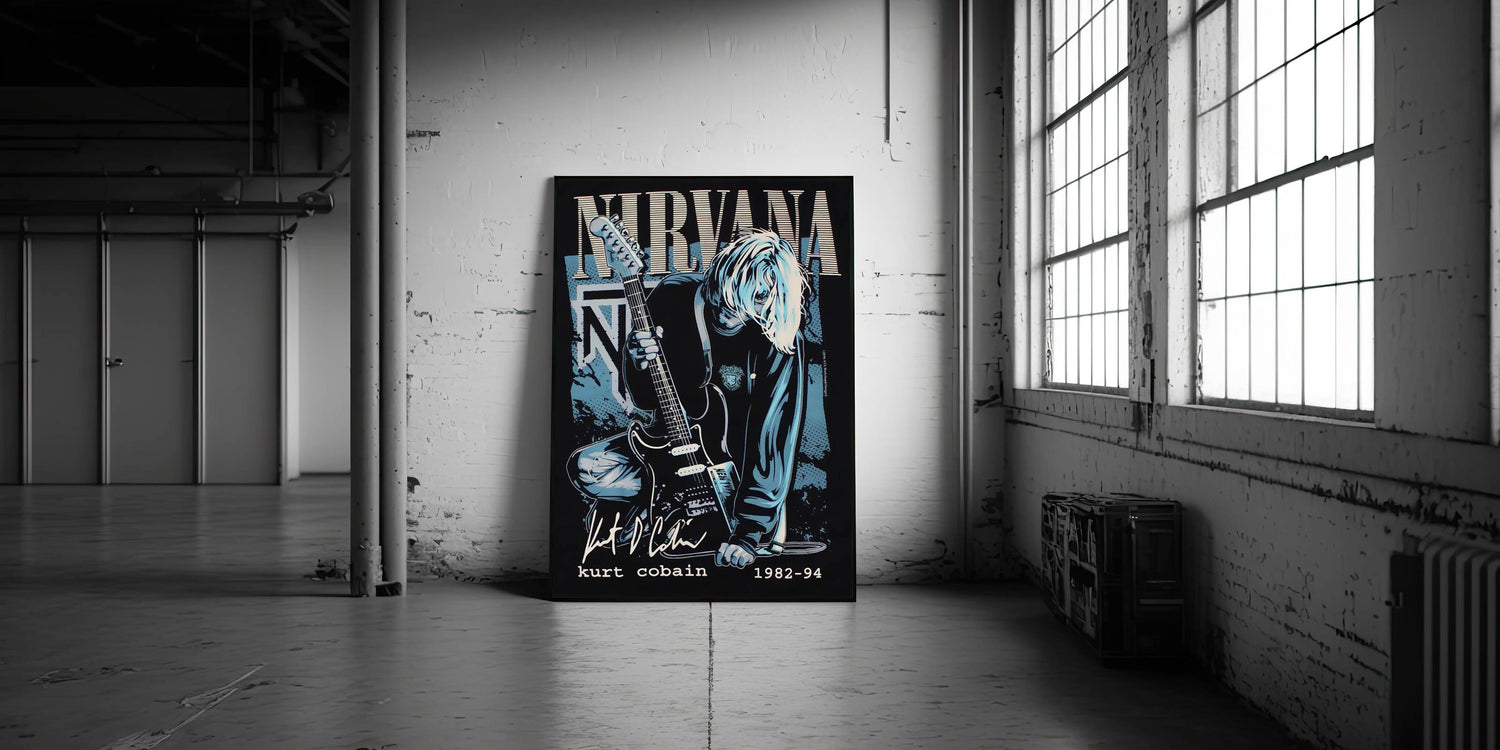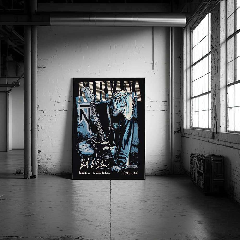 - Features vibrant, nostalgic artwork of Kurt Cobain from Nirvana’s iconic years (1982-1994)