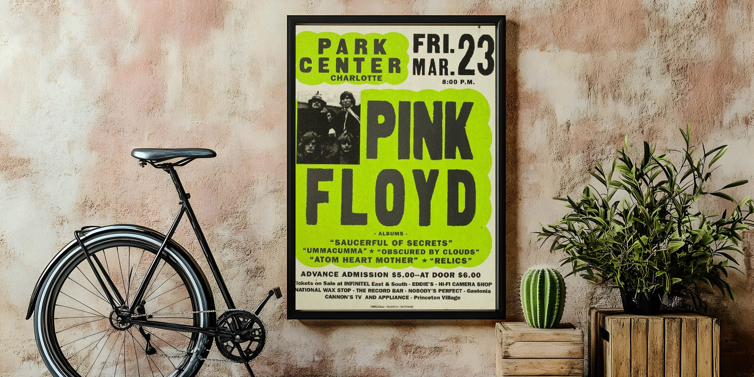 - Vintage concert poster from Pink Floyd’s 1970s performance