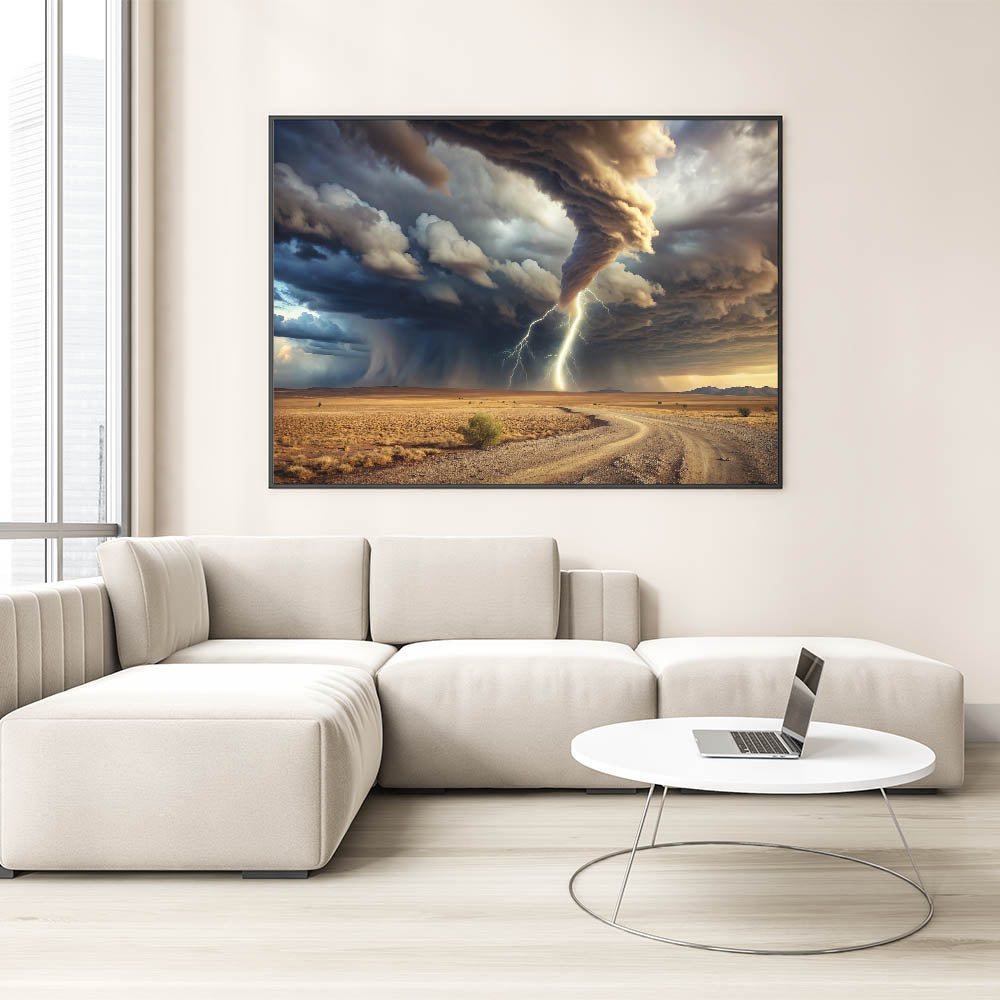 Tornado with Lightning in Desert Landscape - Earthy Phenomena Wall Art