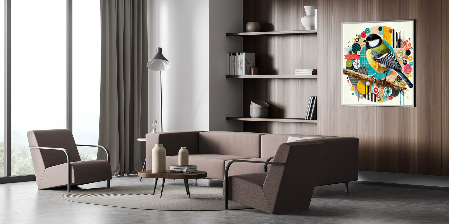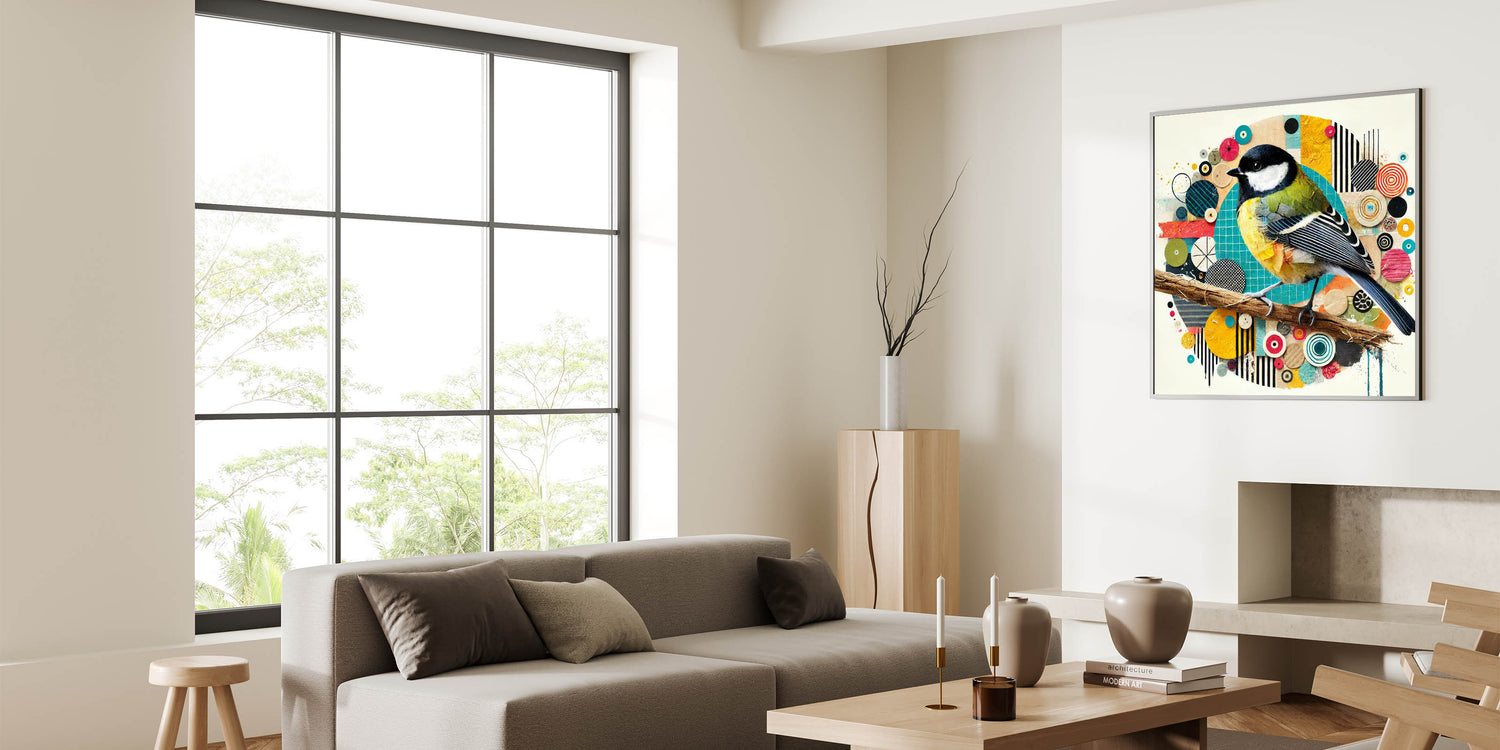 This Garden Birds Art Print is perfect for those who love bold and artistic decor. Whether you're decorating a modern home or looking to add some flair to your walls, this artwork will bring a sense of joy and creativity to your space.