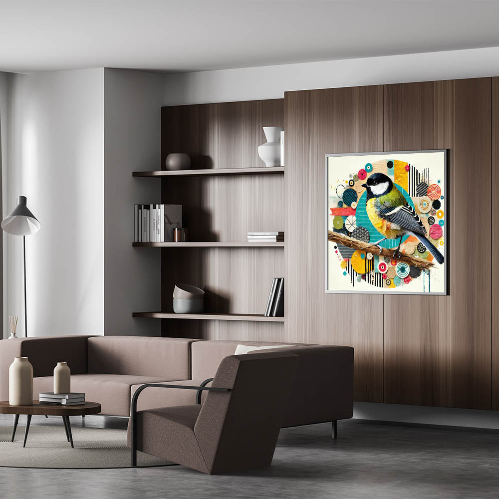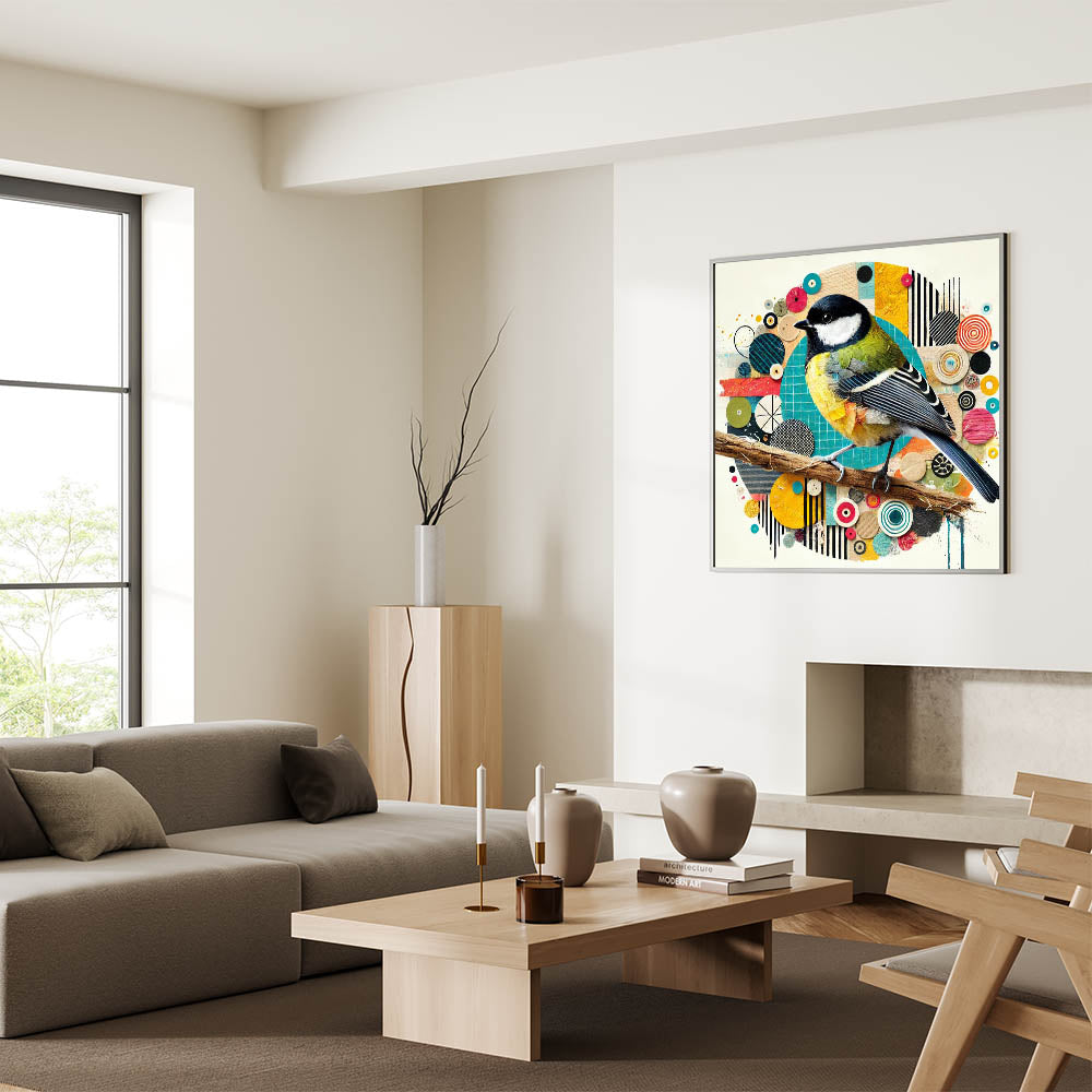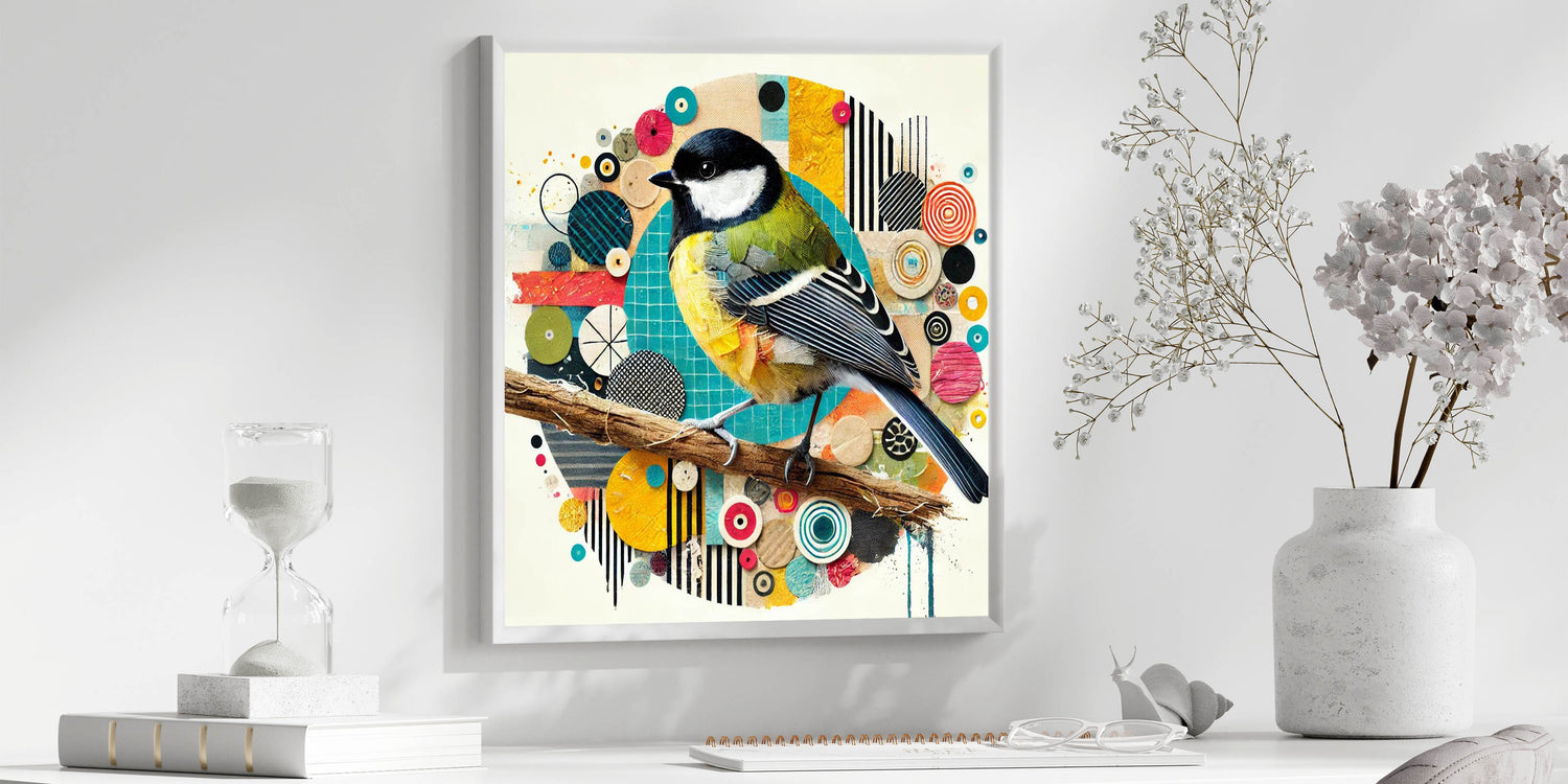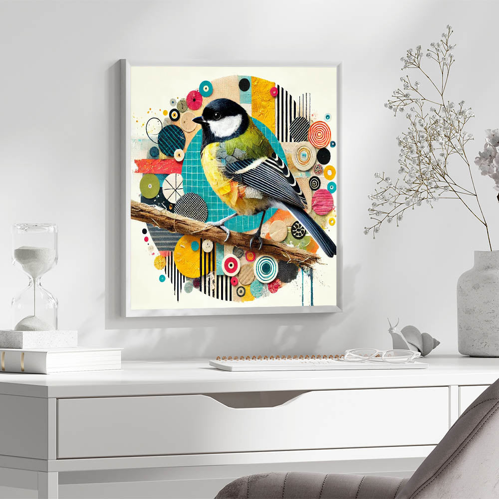 Infuse your space with energy and creativity with this Vibrant Garden Birds Wall Art. This striking piece features a beautiful bird rendered in a mixed-media style, combining vibrant colors, textures, and patterns. The blend of geometric shapes, bold hues, and intricate details creates a dynamic and eye-catching design that will instantly elevate any room.