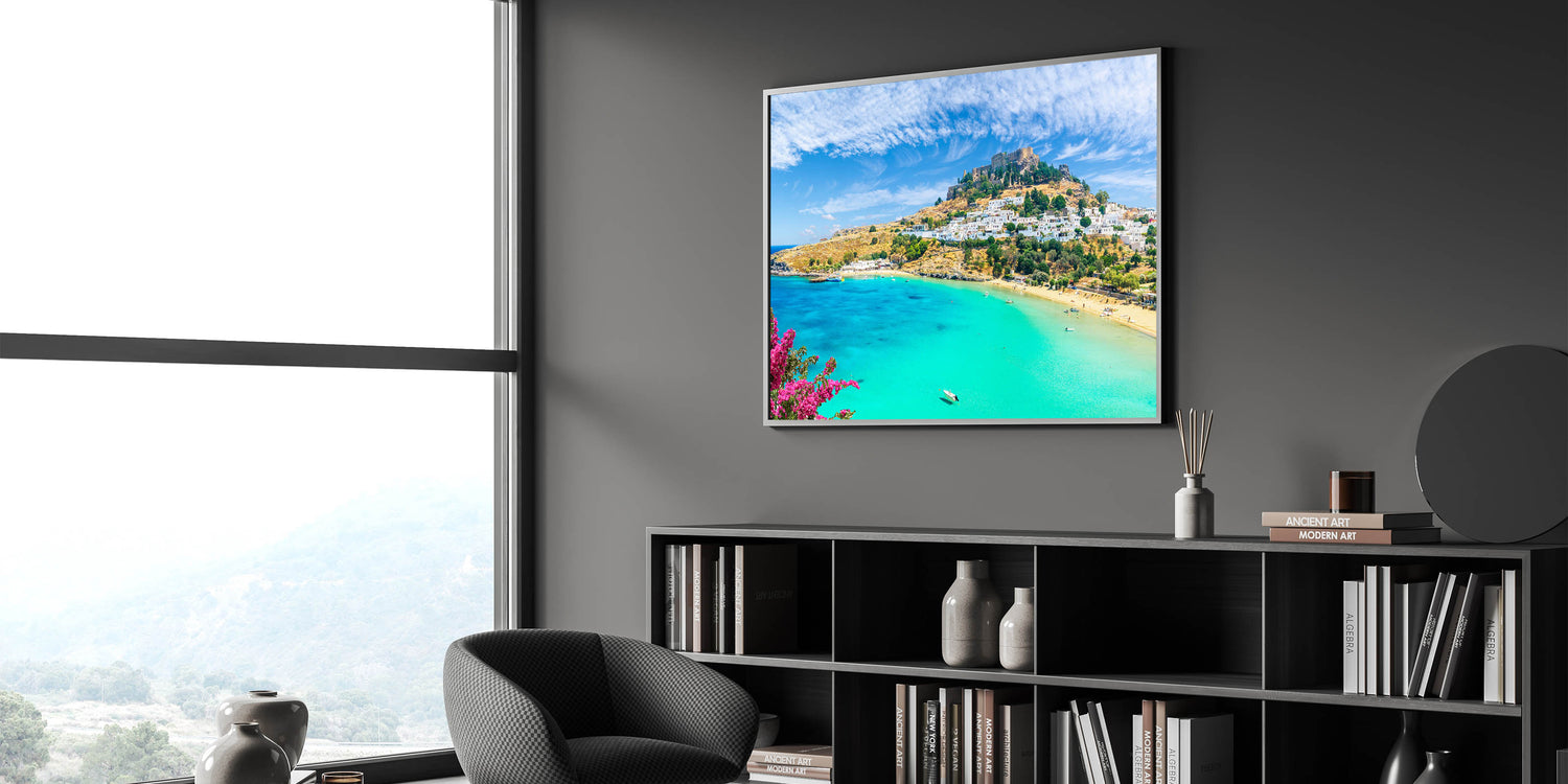 Bring the serenity and vibrant colors of Rhodes Island into your living space and transform any room with this exquisite artwork.