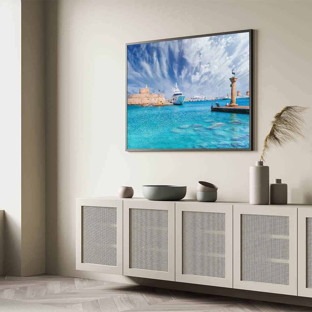 - Vivid colors and intricate details: This Rhodes Island Canvas captures the stunning blue waters, historic architecture, and gentle harbor scene.