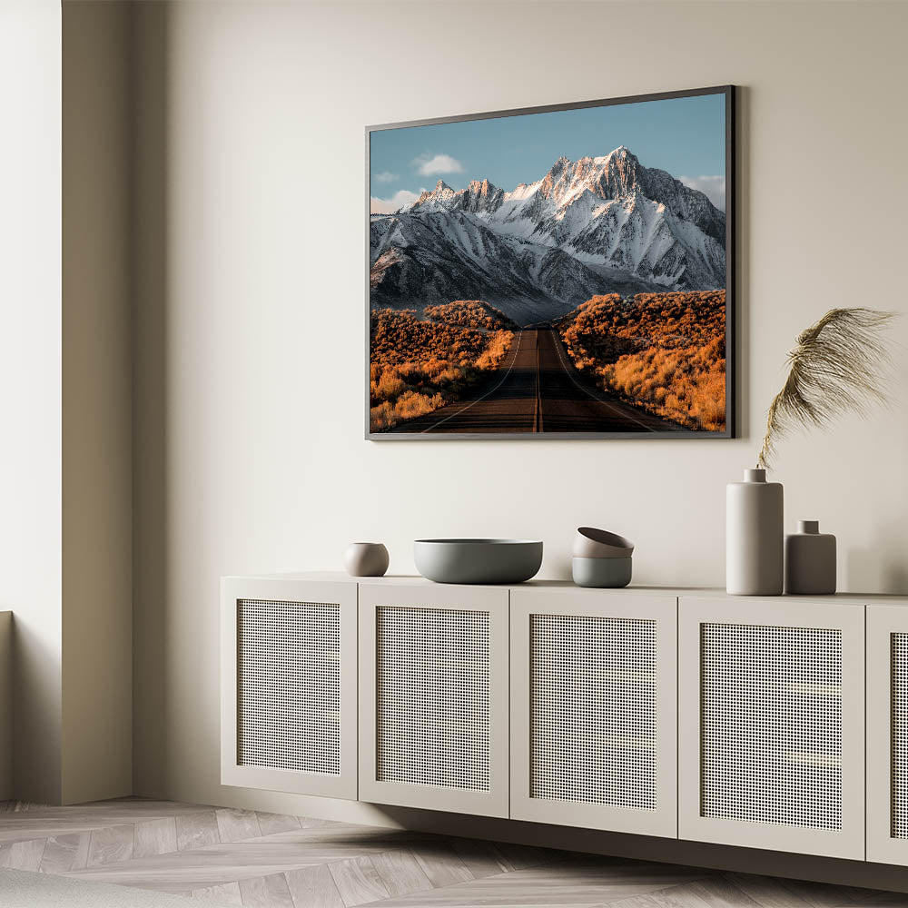 Whether you're looking to inspire your next road trip or simply want to add a touch of natural majesty to your home, this piece will elevate any space with its breathtaking scenery. Order now and bring the adventure of the open road into your decor.