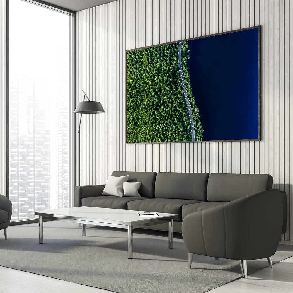 Bring the calming essence of nature into your home with this stunning piece of aerial photography. Whether you're drawn to the vibrant greens or the serene scene, this wall art is sure to create a peaceful and inviting atmosphere in any setting.