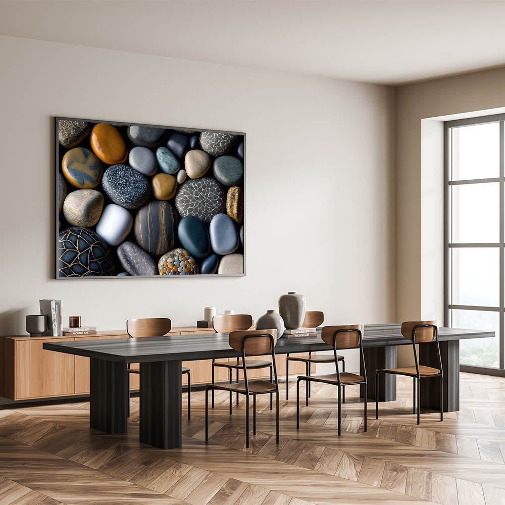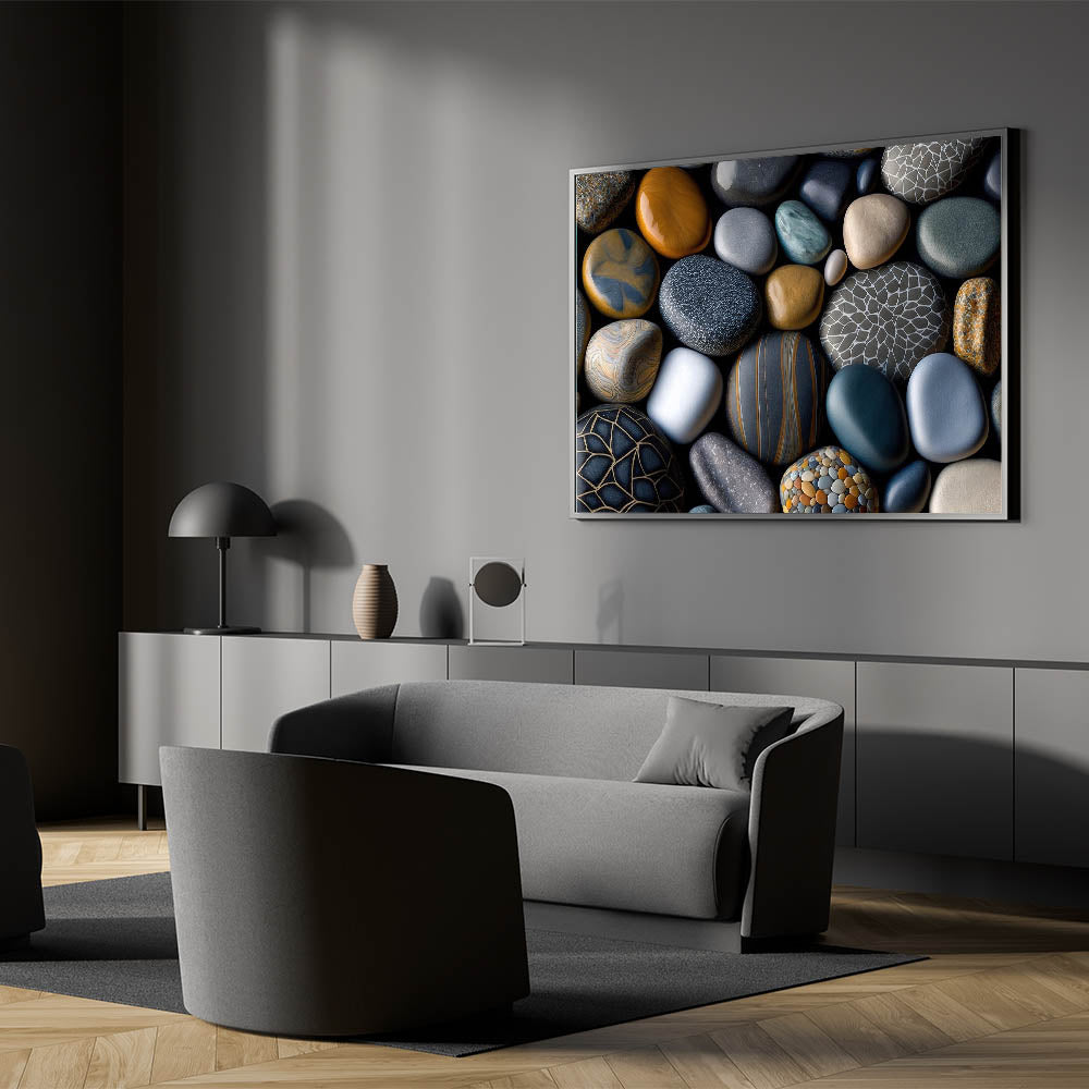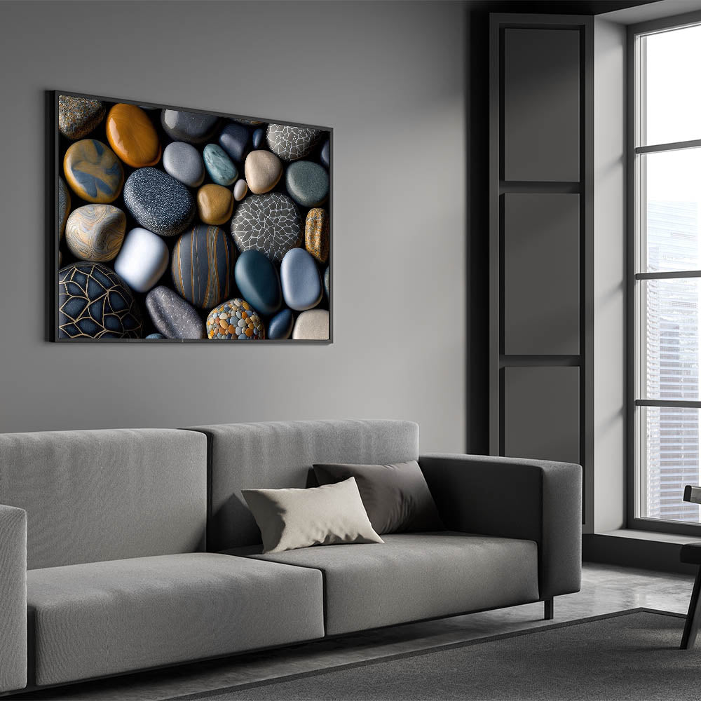 - High-quality rock wall art that showcases the delicate beauty and diversity of natural pebbles.